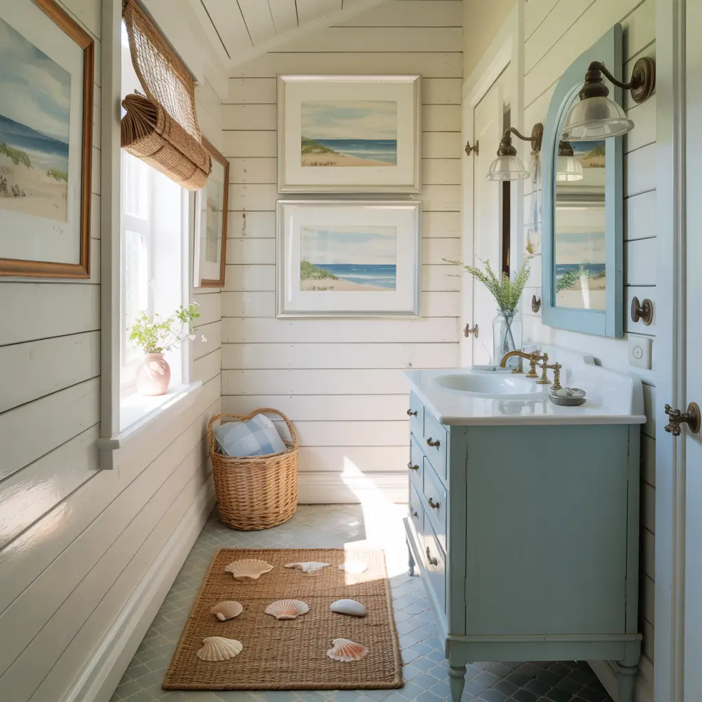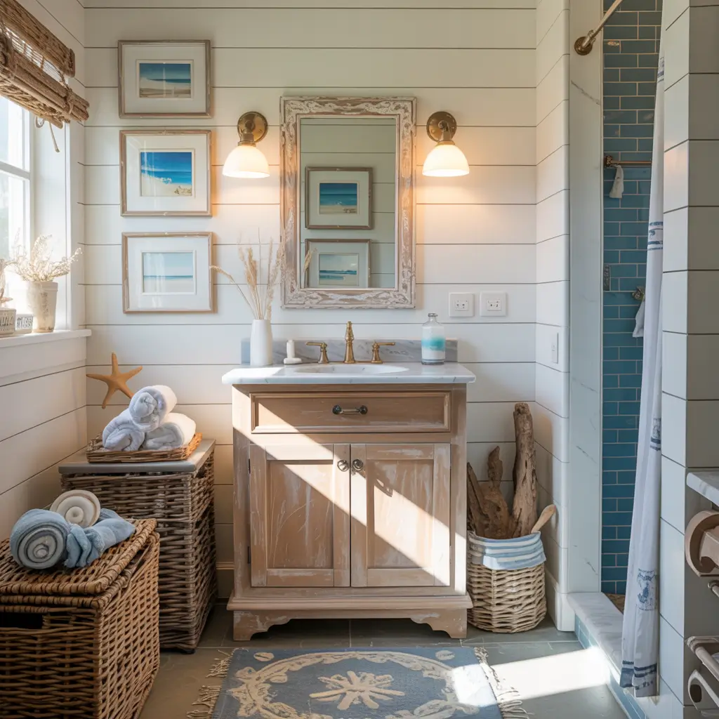Here’s the truth: you don’t need a trust fund to achieve coastal bathroom bliss. Some of my best beachy transformations happened with more creativity than cash. DIY and smart shopping go far in small spaces.