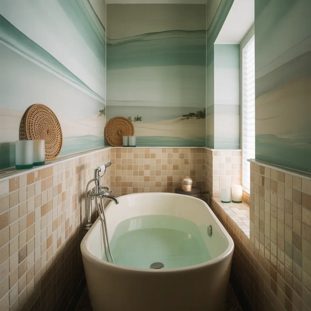 Want instant coastal impact? An ocean-inspired tile accent wall transforms boring bathrooms into stunning focal points. And before you panic about cost, I’m talking about one wall, not a full renovation.
