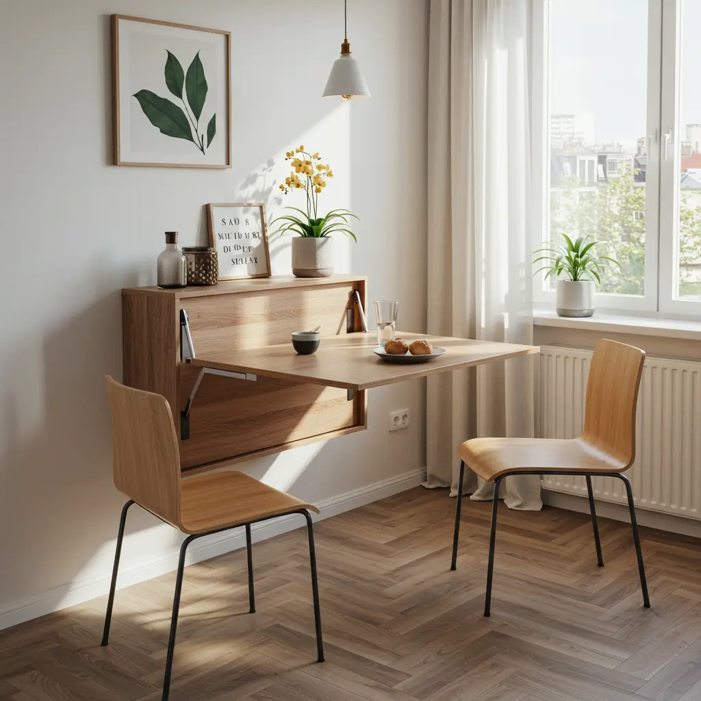 Foldable wall-mounted tables are basically the transformers of the furniture world. One minute you have a blank wall, the next you have a dining table for four. I installed one in my first studio apartment, and it literally saved my sanity (and my security deposit).