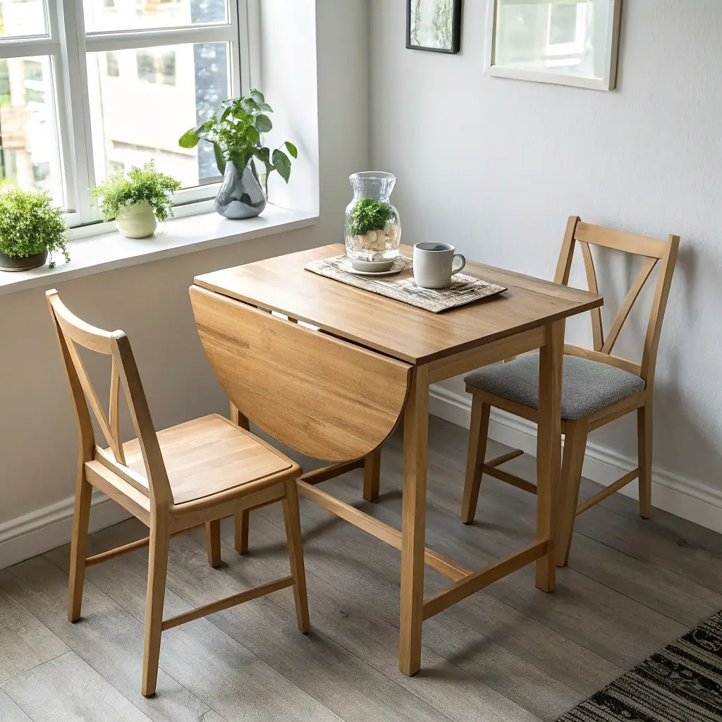 Drop-leaf tables have hinged sections that fold down when not needed. It’s simple, reliable, and surprisingly versatile.