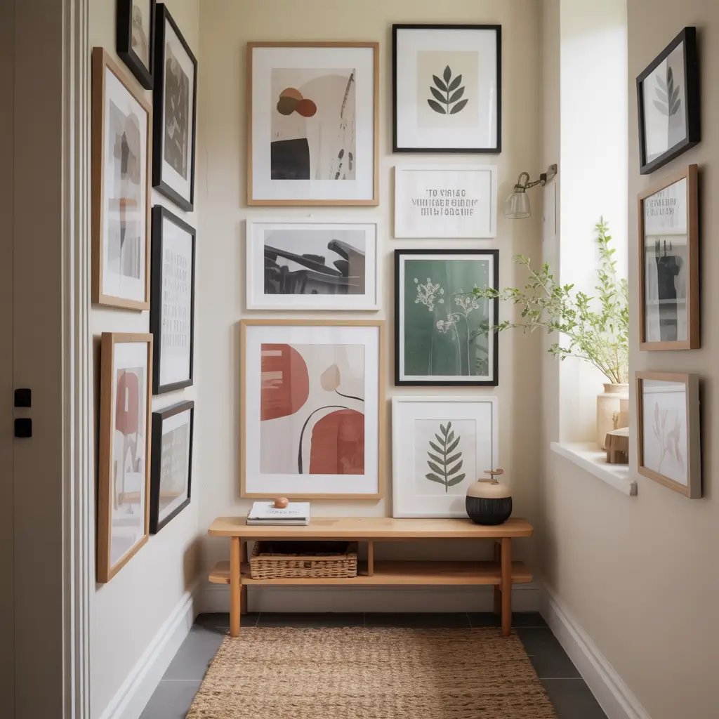 Who says small spaces can’t have personality? A gallery wall of small frames creates visual interest without requiring any floor space. Plus, it’s an instant conversation starter when guests arrive.