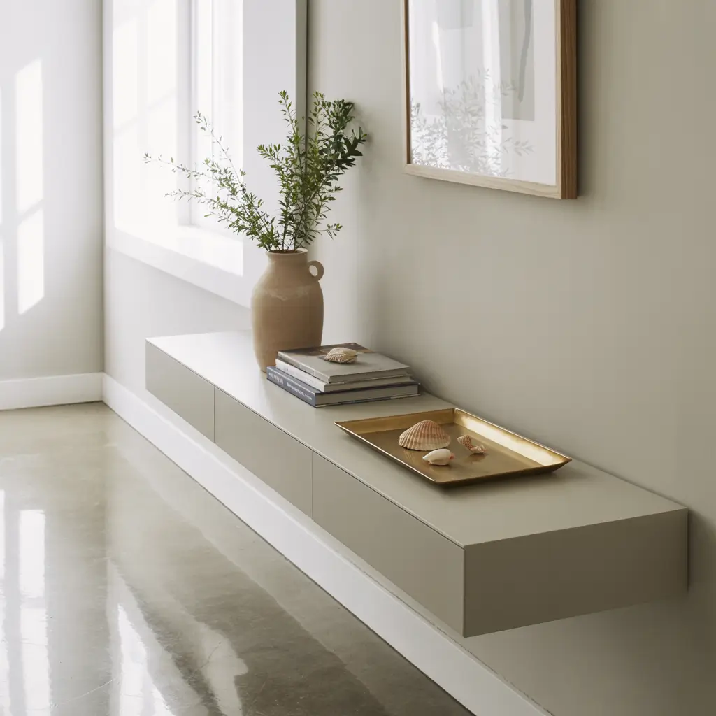 This last idea might sound weird, but hear me out. A super slim floating desk (think 10-12 inches deep) creates a perfect landing strip for your entryway. It’s like a console table but with more functionality for those who need a quick workspace.