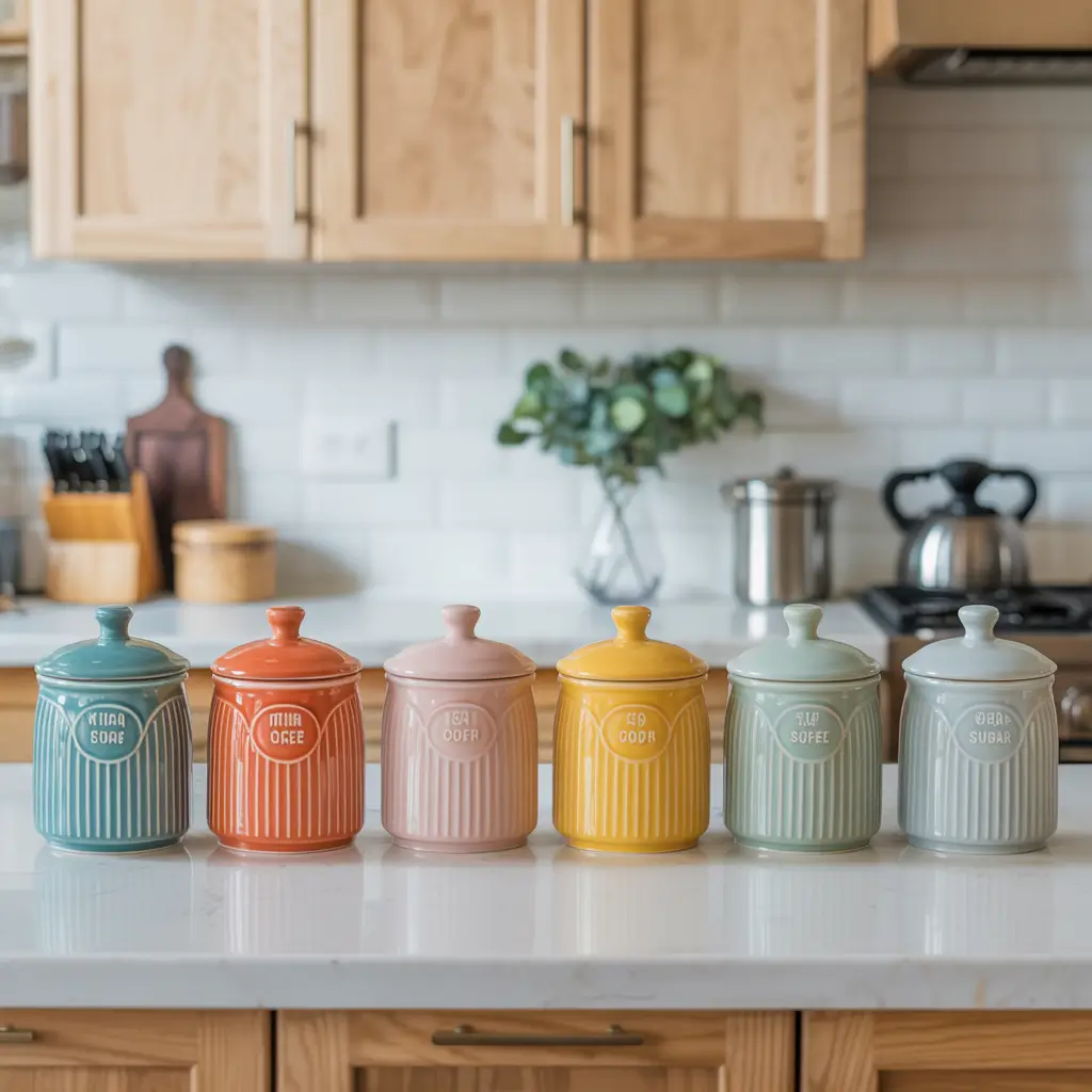 The right canisters transform necessary storage into intentional decor. Color choice matters enormously for visual impact.