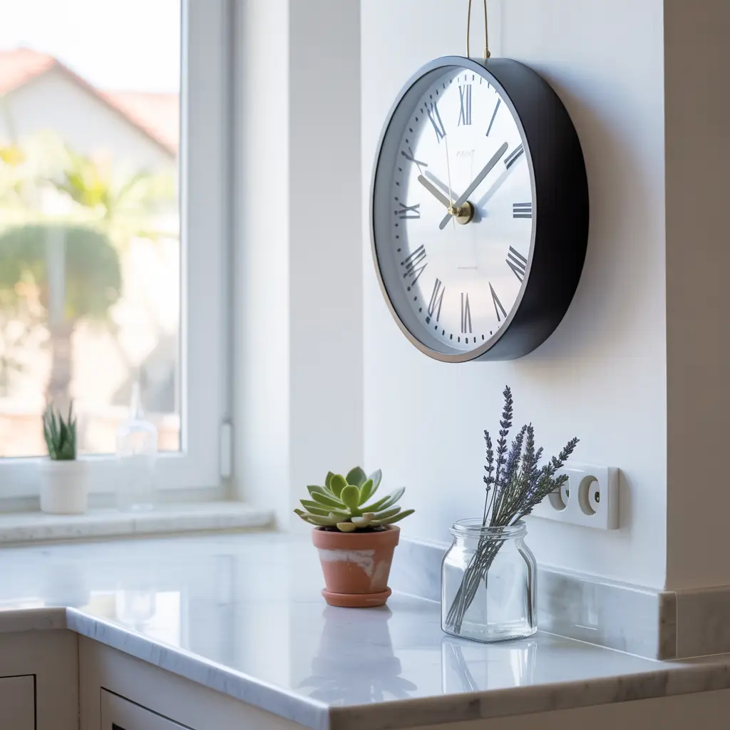 Position your clock above or near your main counter work zone. Functional placement beats pretty-but-useless every single time.