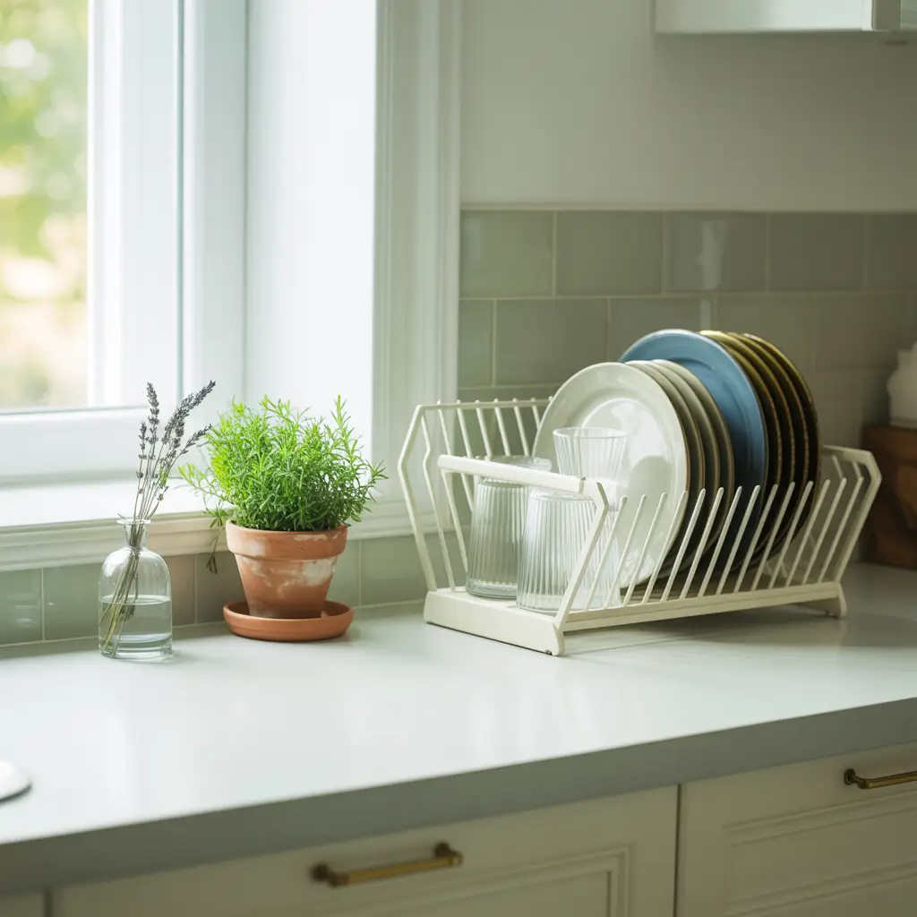 I fought the dish rack battle for years before accepting that I’m an air-dry person. Now I have a beautiful bamboo rack that I actually don’t hate seeing. Sometimes accepting your habits and working with them beats fighting reality.