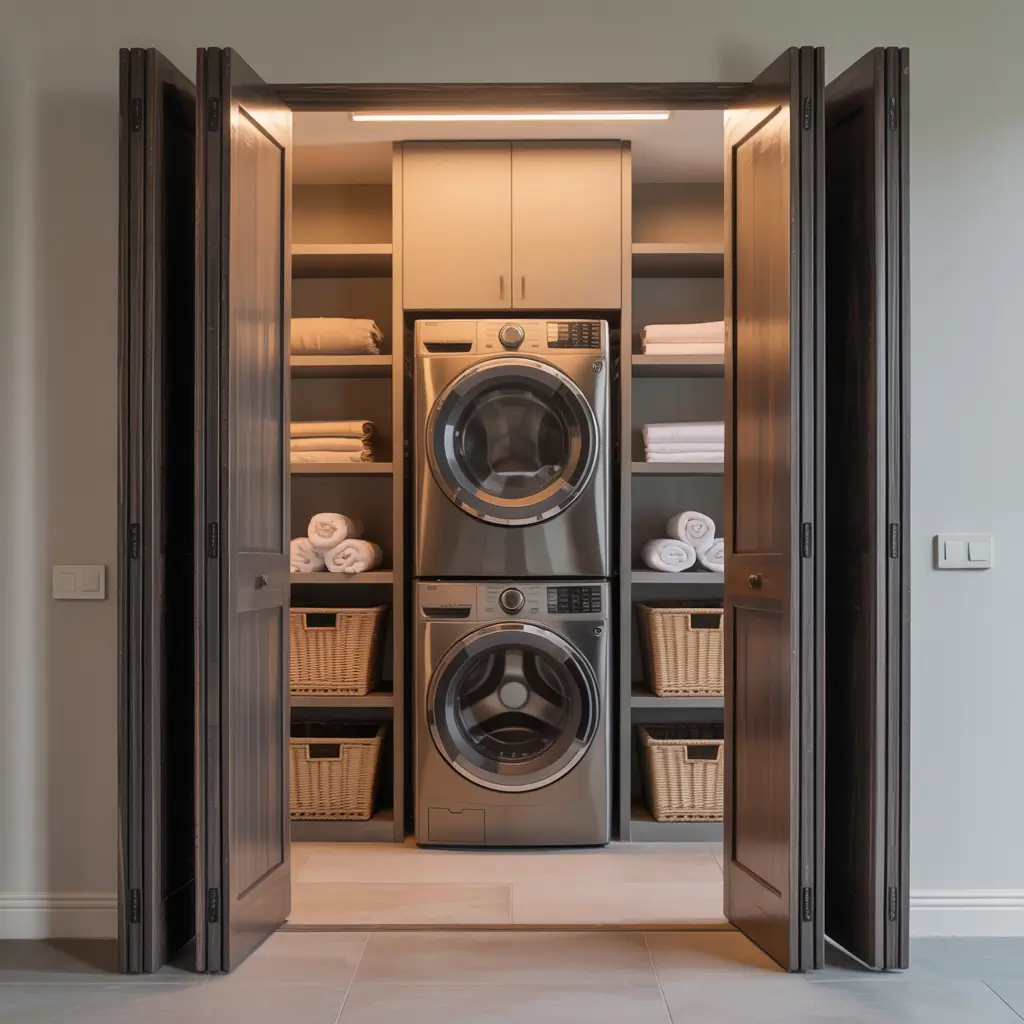 I helped my sister transform her hallway closet last summer, and now guests have no idea there’s a full laundry setup behind those innocent-looking doors. The trick involves stacking your washer and dryer (if they’re stackable) or going with a compact all-in-one unit.