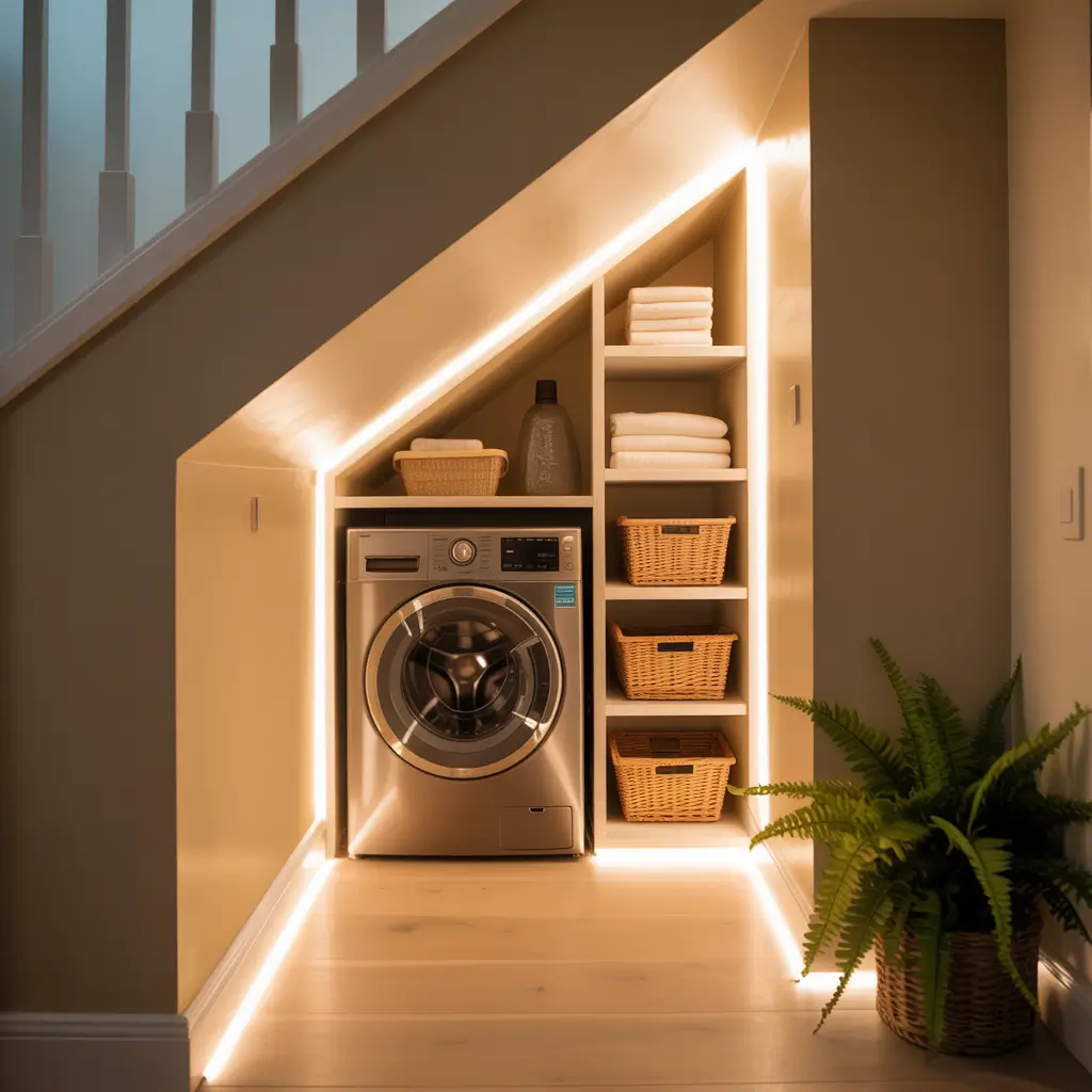 Got a Harry Potter cupboard situation under your stairs? Time to work some magic. Under-stairs laundry rooms maximize otherwise wasted space.
