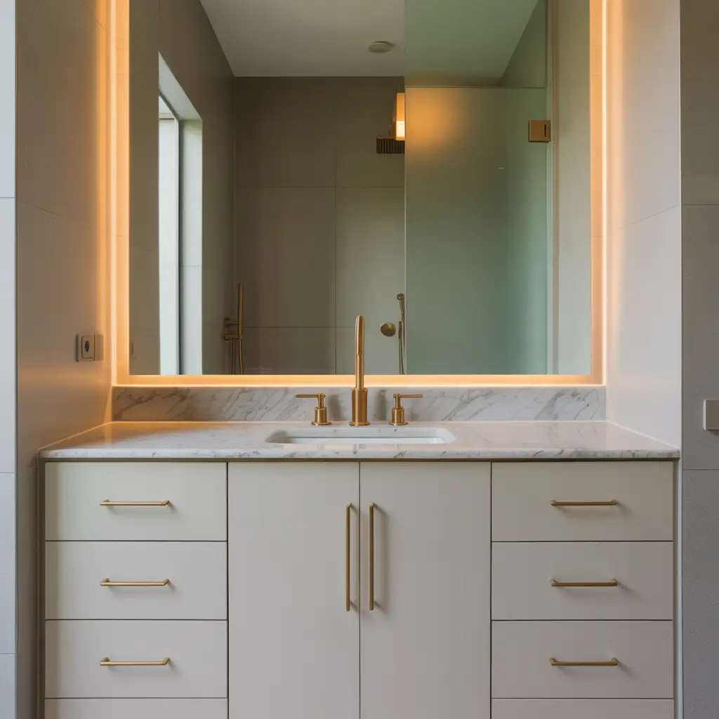 Consider smart bulbs that adjust throughout the day. Bright and slightly cooler for your morning routine, warm and dim for evening baths. It’s like having multiple bathrooms in one.