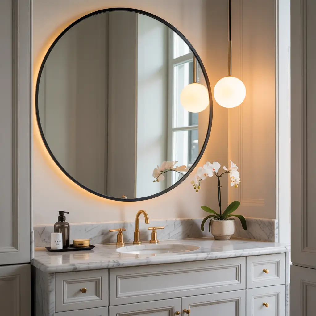Don’t be afraid to get creative with shapes either. Round mirrors soften angular spaces, while geometric designs add modern edge. Just make sure it’s properly anchored – nobody wants a seven years of bad luck situation in their luxury bathroom.
