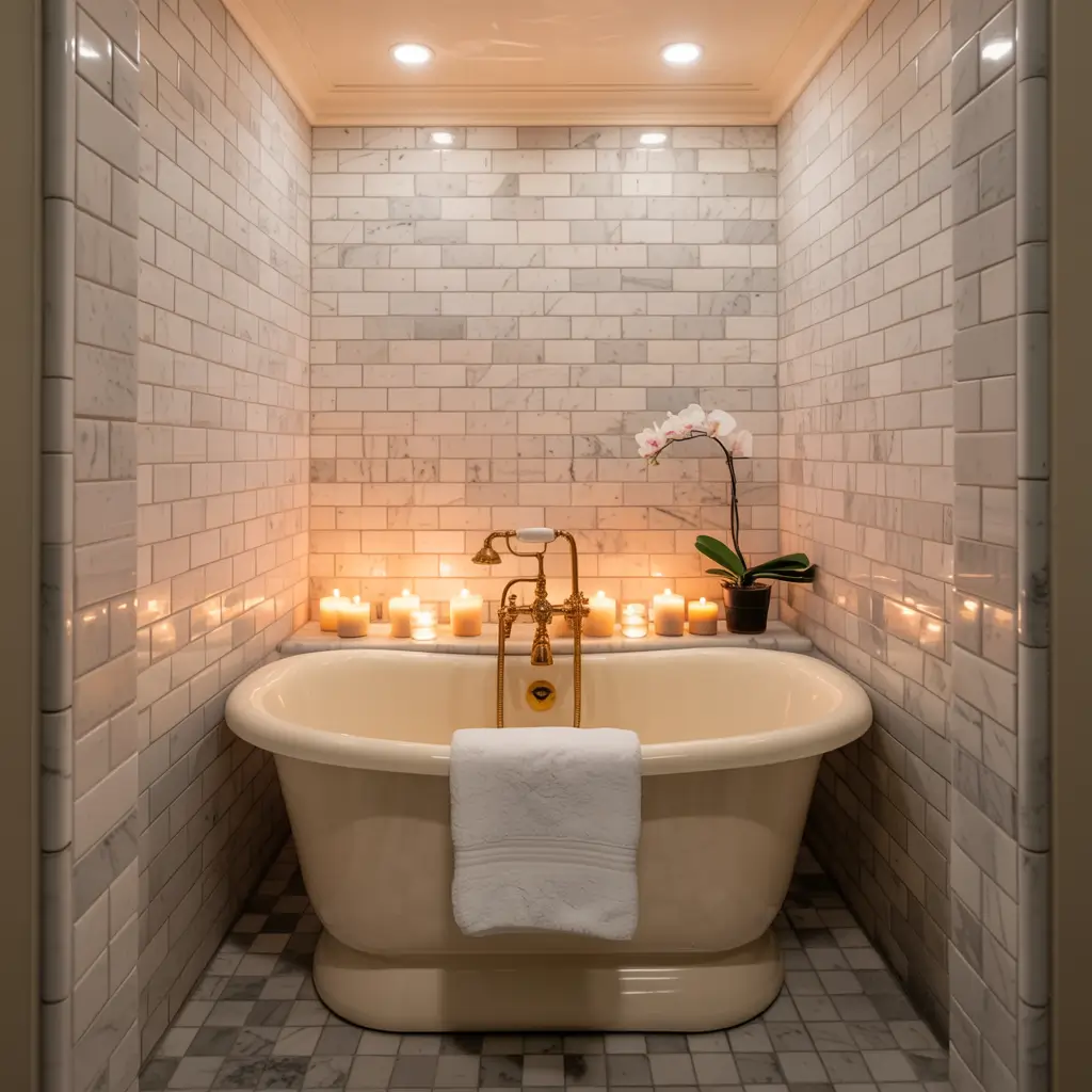 We need to talk about color temperature because it’s the difference between luxury spa and hospital bathroom. Warm lighting (2700K-3000K) is absolutely essential for creating that cozy, high-end atmosphere.