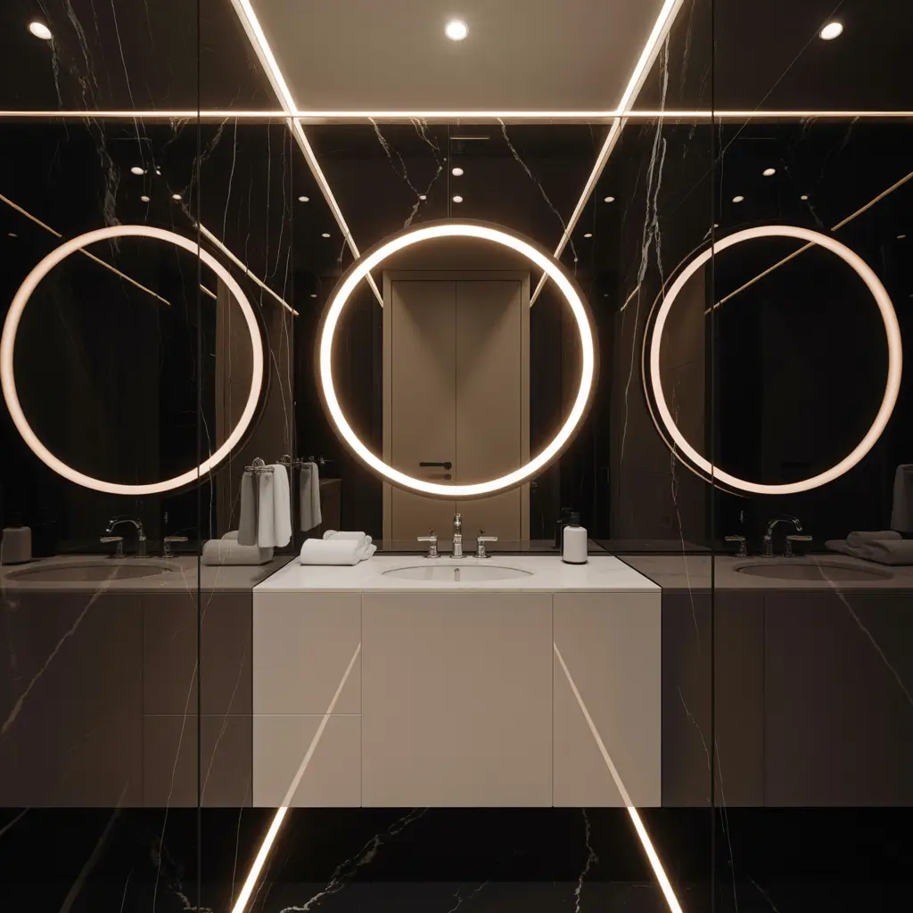 Ever noticed how fancy restaurant bathrooms always nail the lighting? That’s the vibe we’re going for here.