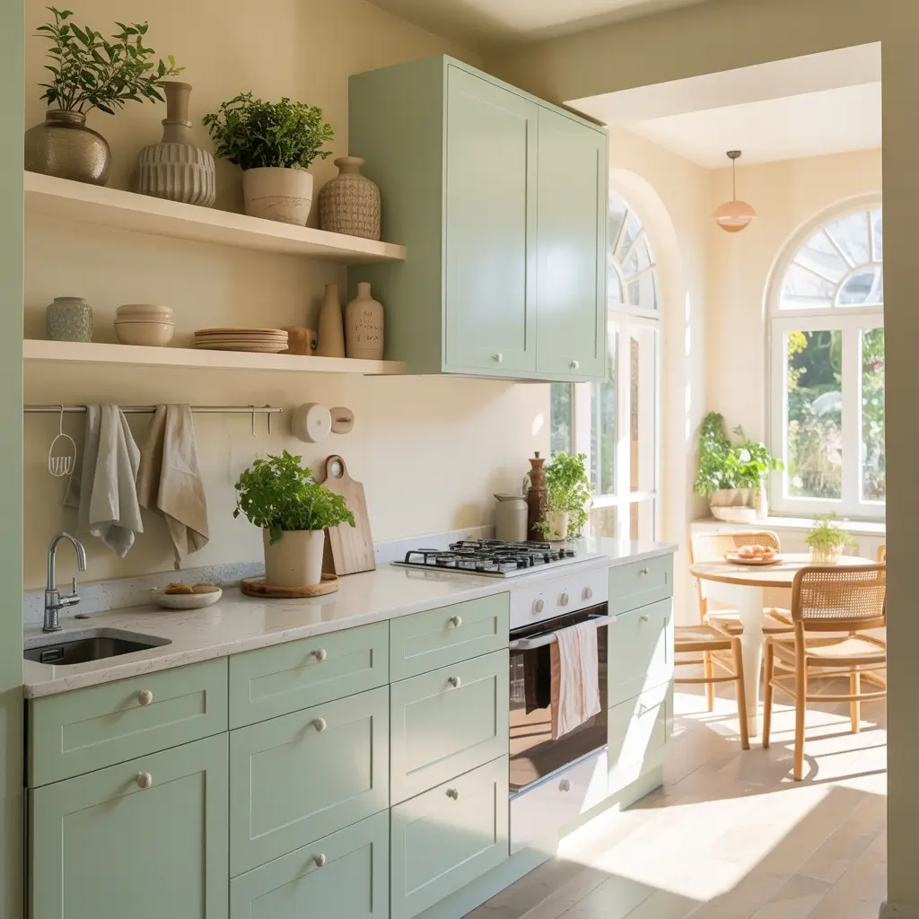 The trick is choosing muted pastels rather than Easter egg brights. Think dusty pink, sage green, or powder blue. I painted my cabinets mint and kept everything else white and natural wood. The result feels fresh and intentional, not like a nursery.