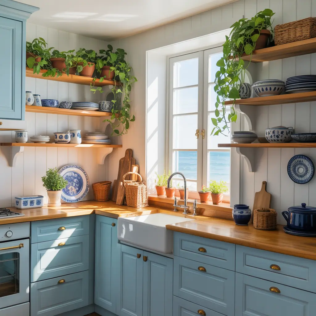 Coastal style makes every meal feel like vacation. Light colors and natural textures expand small spaces while creating that beachy vibe we all crave. My landlocked coastal kitchen transports me to the shore daily.