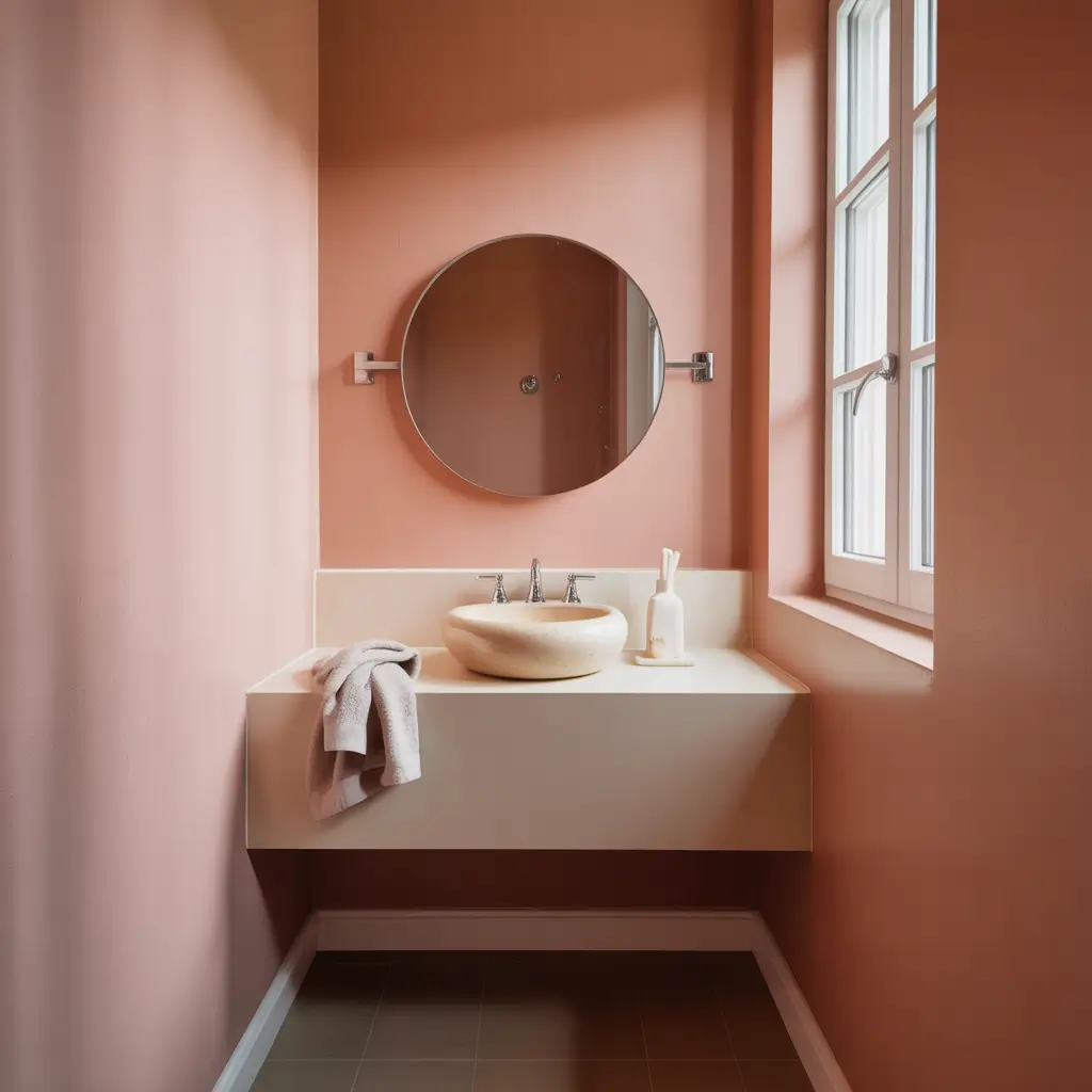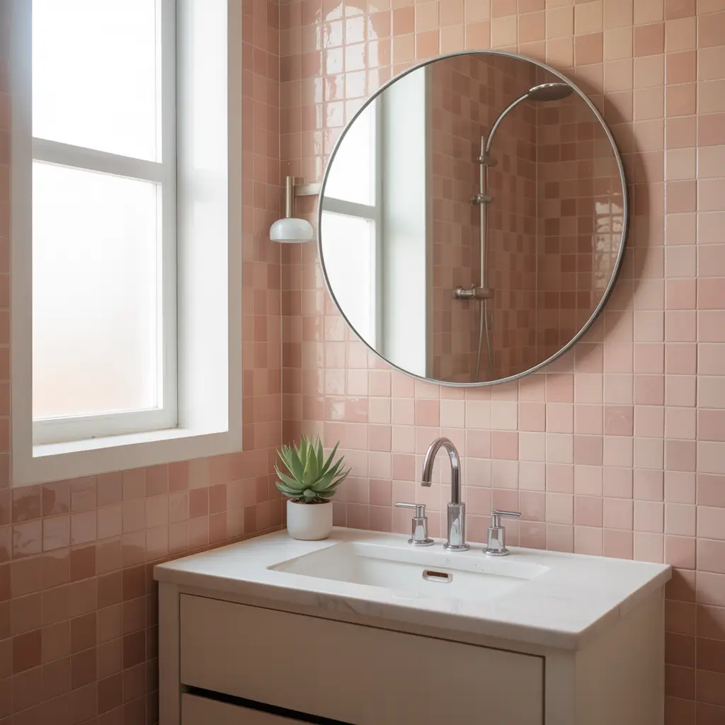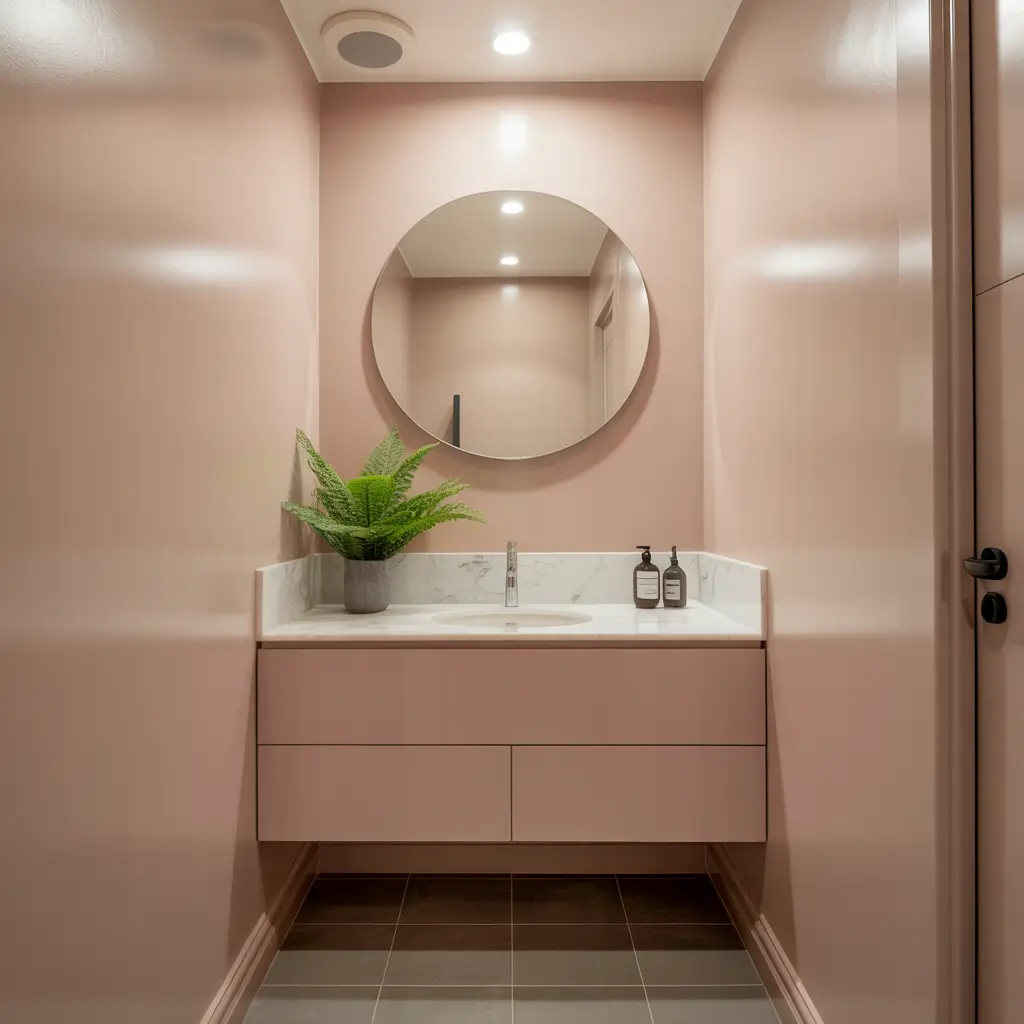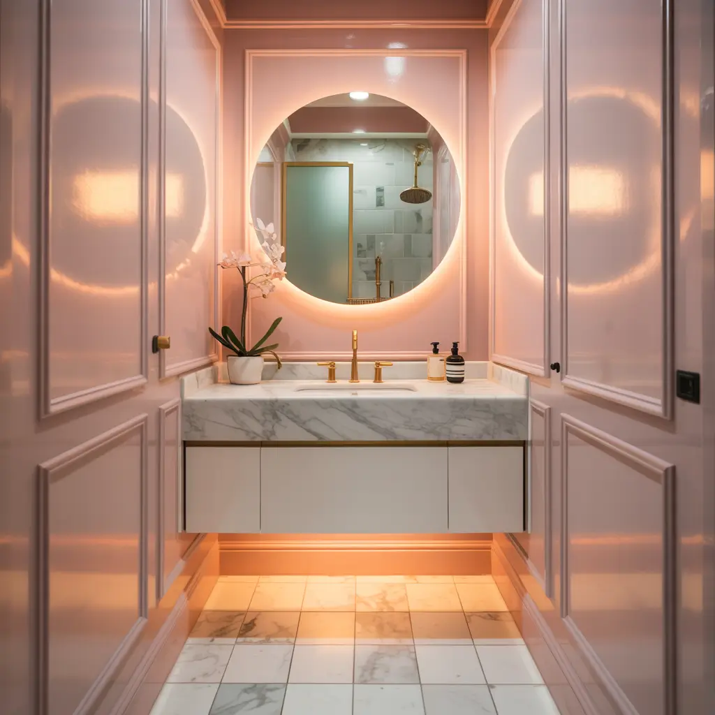 The rose gold comes through in your fixtures—faucets, towel bars, mirror frames. The pink provides the backdrop, whether through paint, tiles, or accessories. Together? Magic happens.