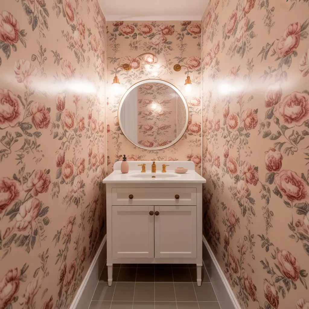 Wallpaper in a bathroom? In 2024? Absolutely. But we’re not talking about your aunt’s dusty rose and mauve situation from 1992. Modern floral wallpapers with pink elements can transform a small bathroom into a jewel box.