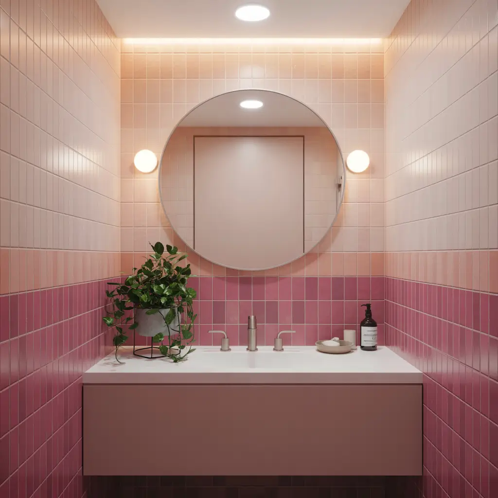 Ombre in a bathroom? Why not! This gradient effect, where pink fades from dark to light (or vice versa), creates incredible visual interest without needing any other decoration.