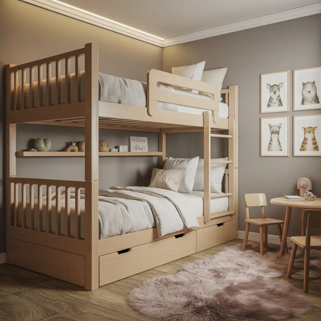 You know what’s lurking under most bunk beds? Dust bunnies the size of tumbleweeds and that toy your kid swore was lost forever. Bunk beds with sliding storage drawers turn that wasted space into organizational gold. Every inch counts in small shared bedrooms, and these drawers are like finding hidden square footage.