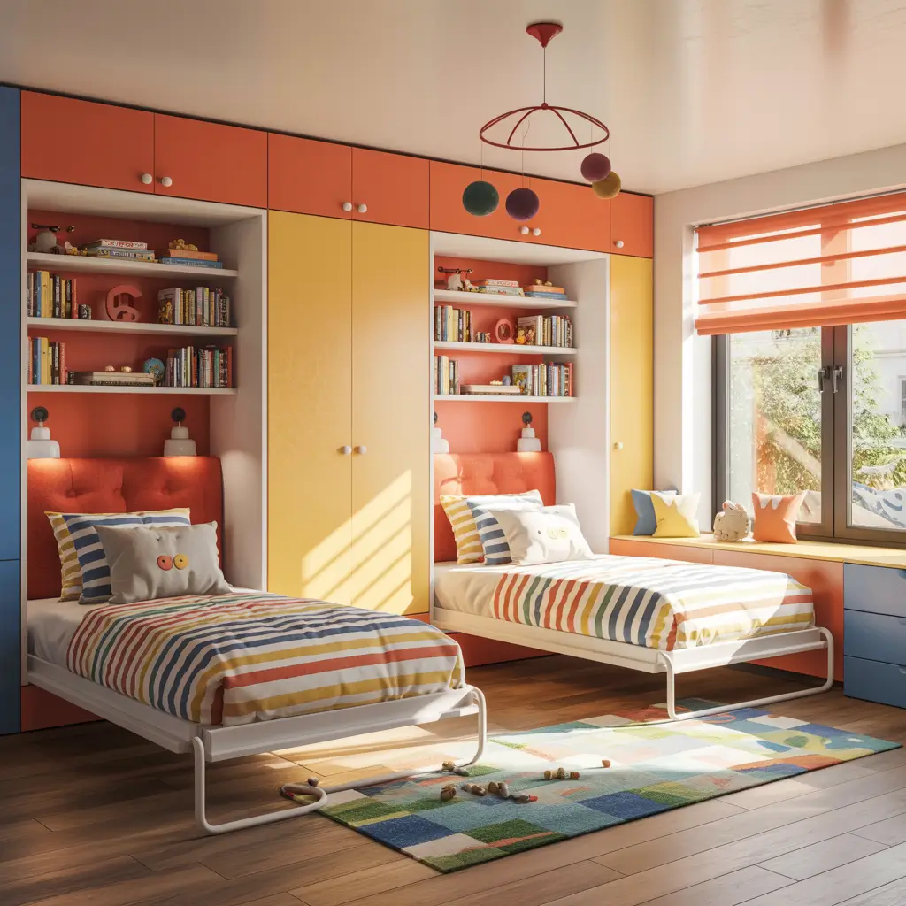 Murphy beds for kids might sound excessive, but hear me out. In truly tiny shared bedrooms, Murphy beds transform the space from sleep zone to play zone in seconds. Modern versions are safe, easy to operate, and some even include built-in storage.