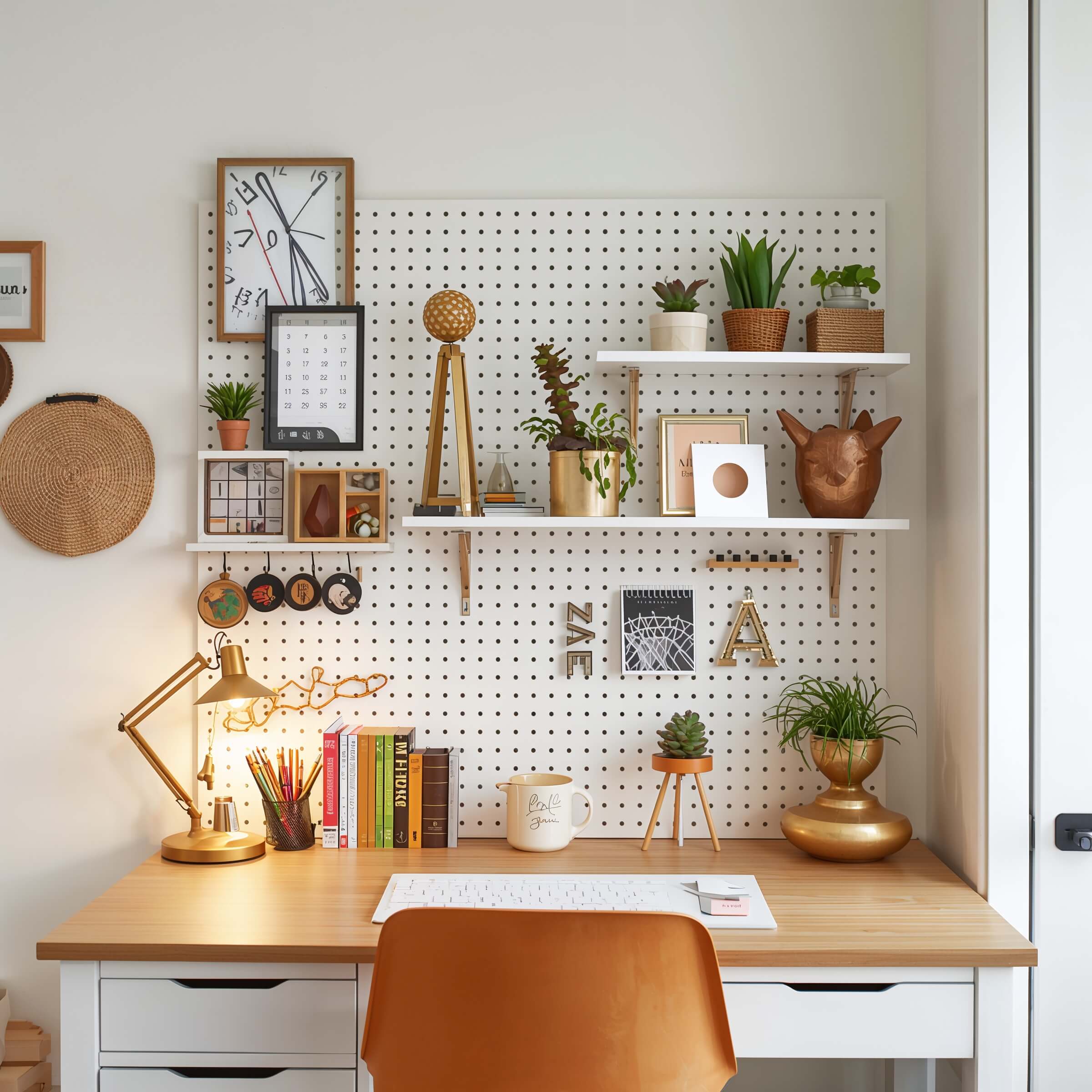If you enjoy DIY projects, painting the pegboard in a custom color adds even more personality. Soft pink, white, beige, or matte black all look amazing.
