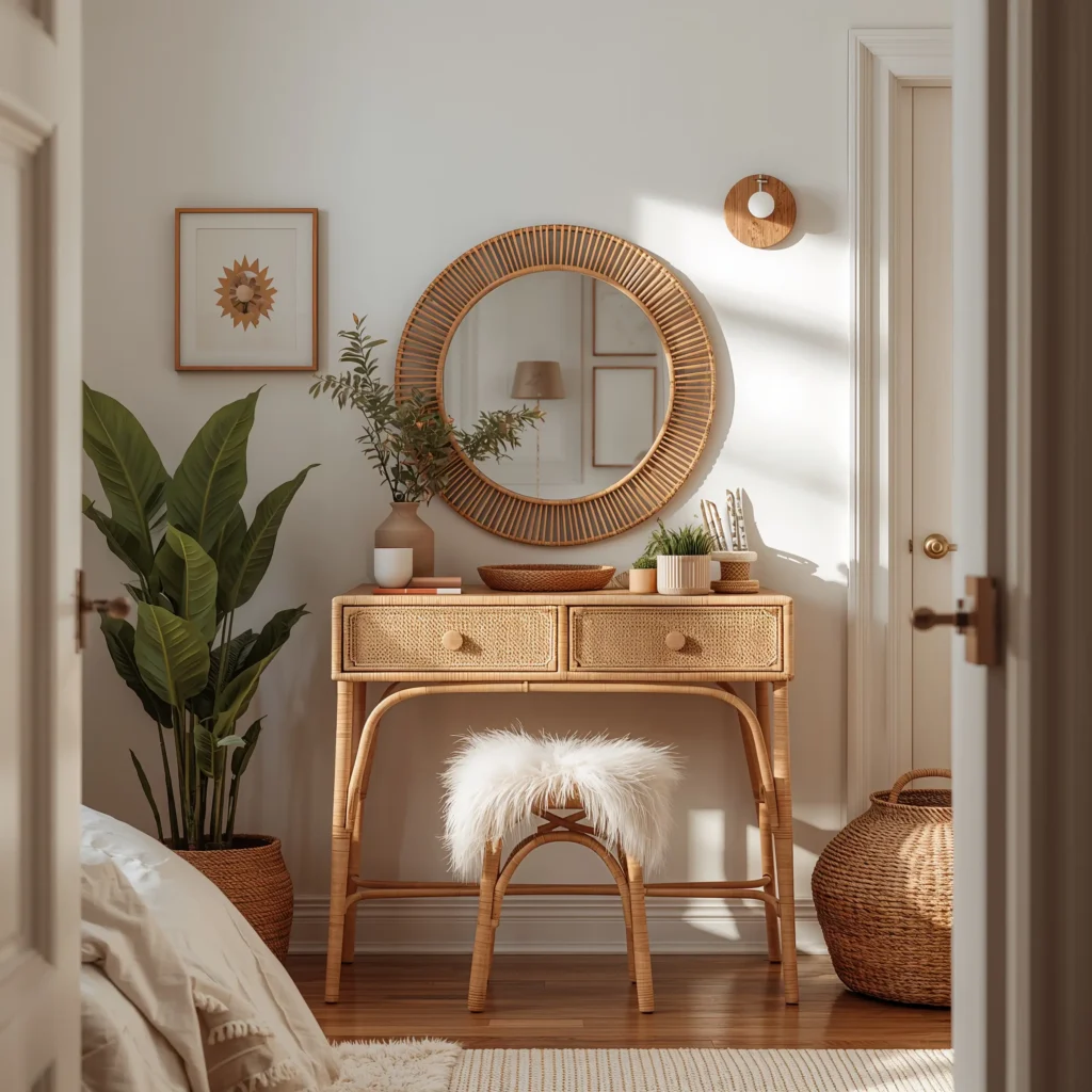 Rattan furniture brings that relaxed, vacation vibe right into your bedroom. These lightweight vanities add texture and warmth without the visual weight of solid wood furniture.