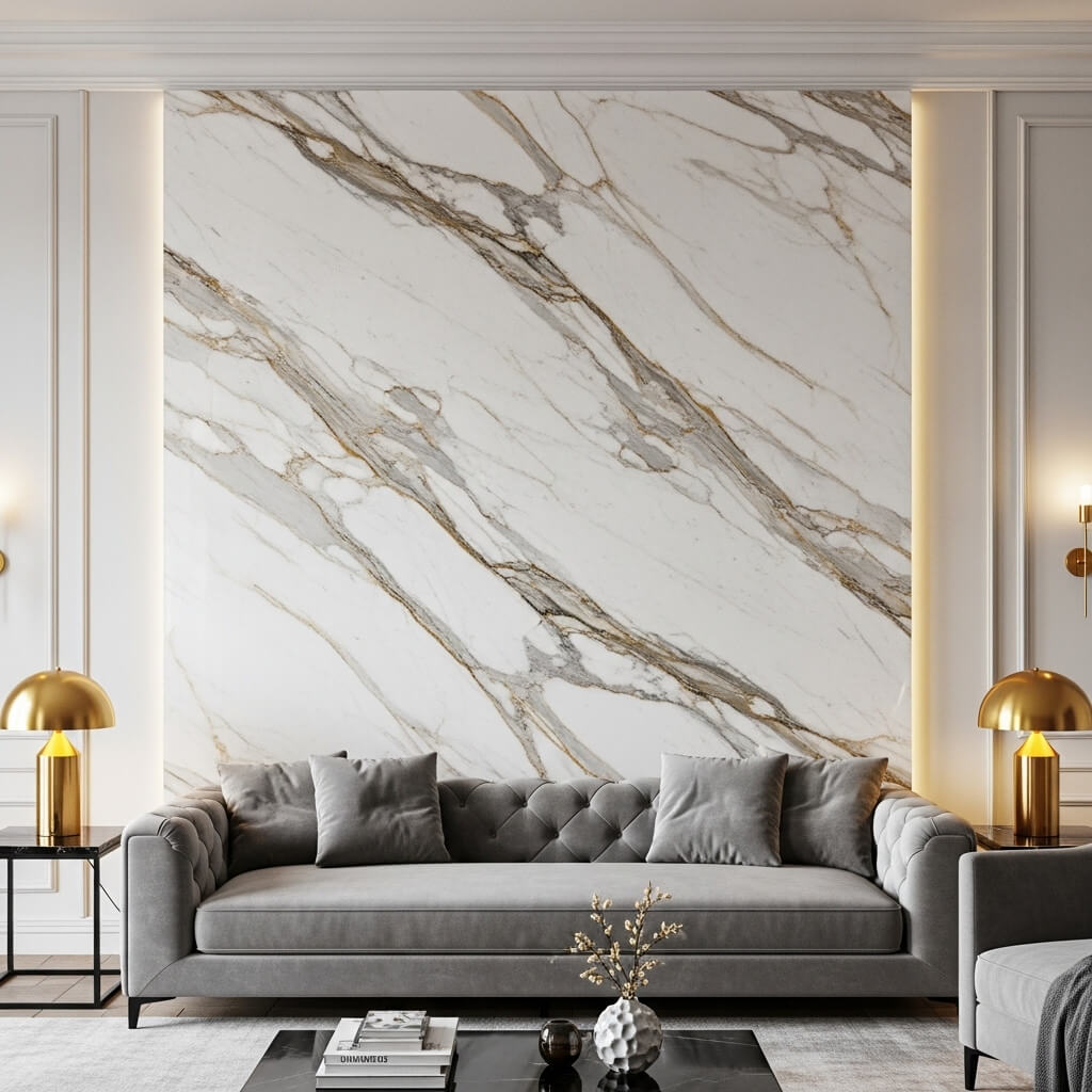 3. Luxury Marble Texture Sofa Feature Wall