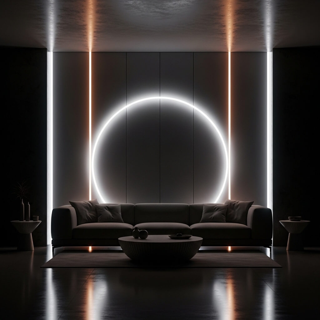 Want to add drama and ambiance with the flip of a switch? LED backlit panels behind your sofa create this floating, ethereal effect that looks expensive and modern.