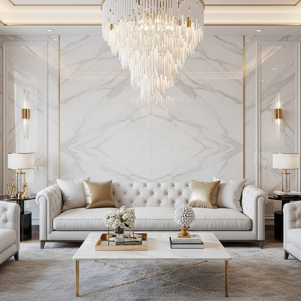 High-End Marble & Sofa Combo Living Room Design