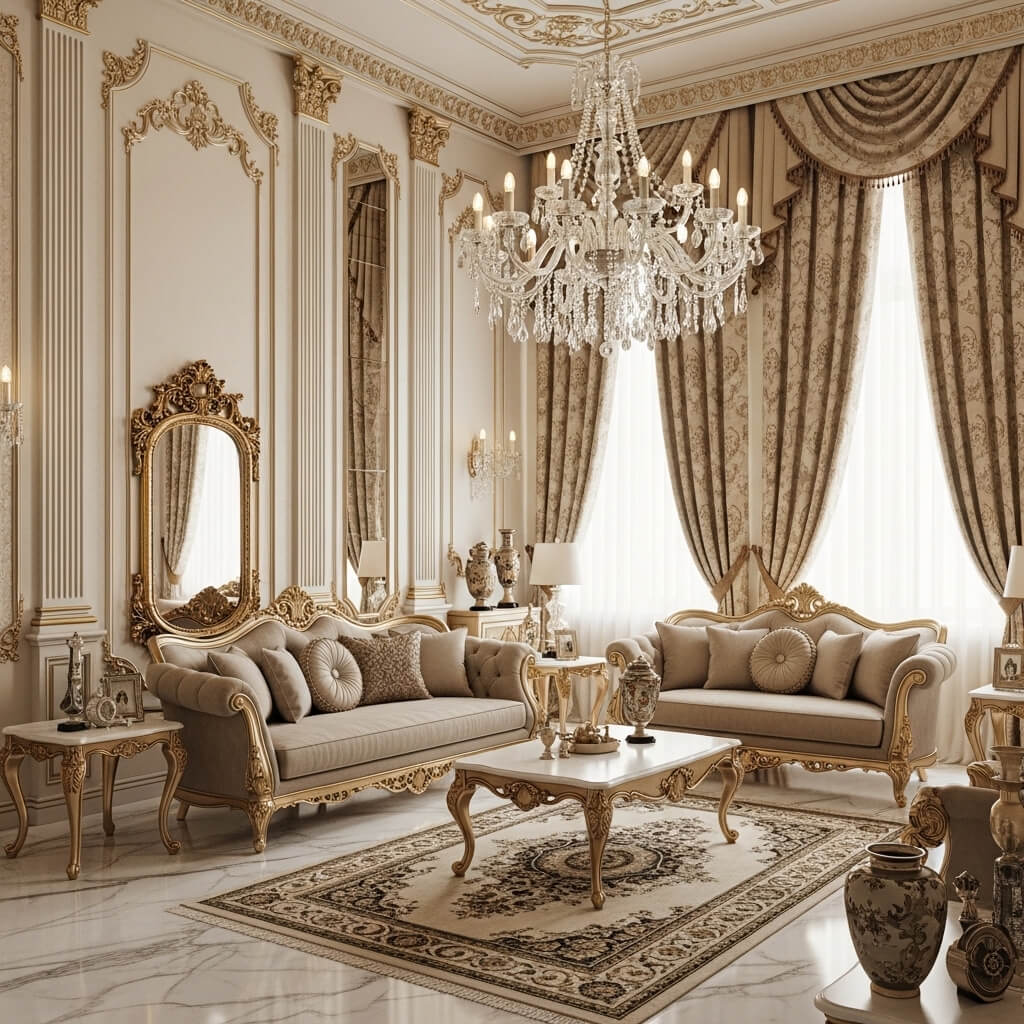 I’ve seen this work beautifully with deep jewel tones like emerald green, sapphire blue, or burgundy. The contrast between rich, saturated upholstery and gleaming gold creates this regal atmosphere that honestly makes everyday Netflix binges feel fancy.