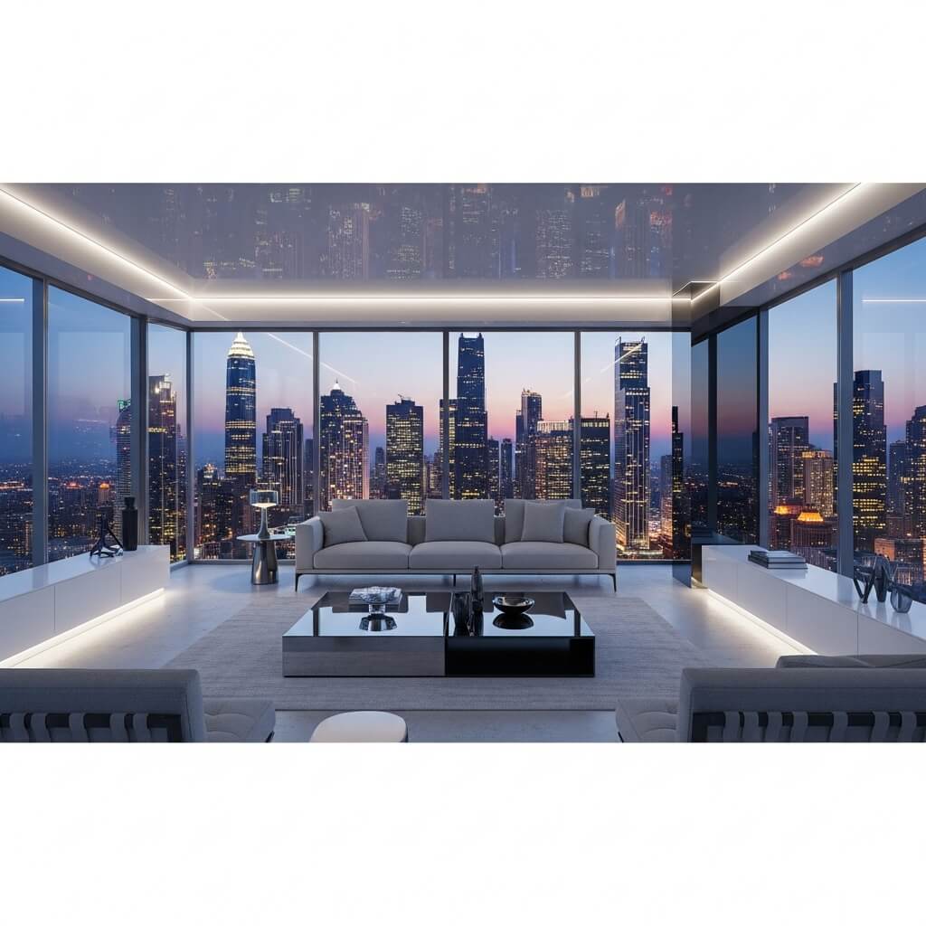 I helped my brother design his new apartment, and he was obsessed with this ultra-modern look. We paired a low-profile white leather sofa with a sculptural glass coffee table and floor-to-ceiling windows, and honestly, the result looked like something from an architecture magazine. The glass kept everything feeling open and airy while the sofa provided that necessary comfort and substance.