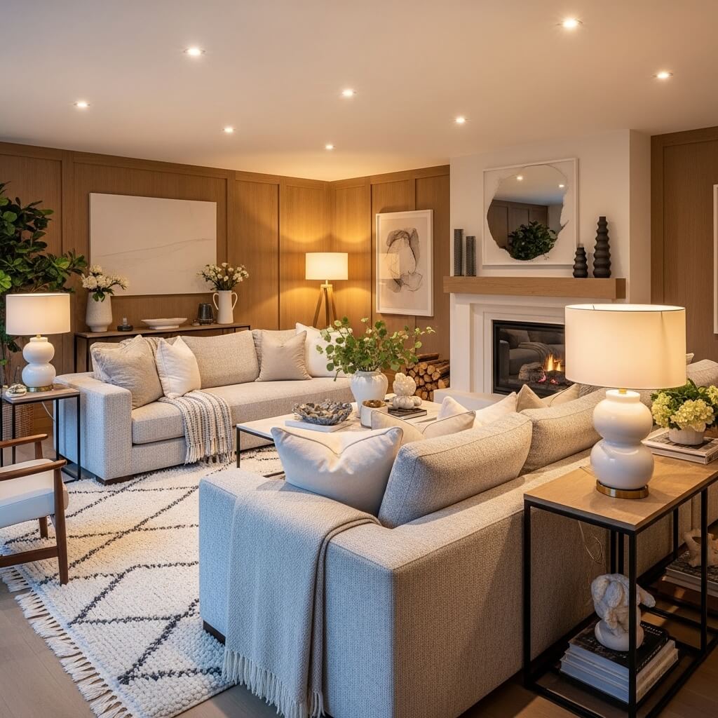 The secret to cozy luxury is layering. Start with your amazing sectional, then pile on the plush throw blankets, mix in some oversized pillows, add a soft area rug underneath, and suddenly you’ve created this inviting cocoon that guests literally don’t want to leave.