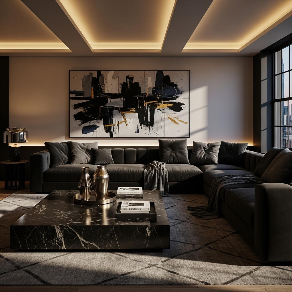 The luxury factor comes from choosing high-end upholstery and proper proportions. Your L-shaped sofa should feel substantial without overwhelming—it’s a delicate balance that honestly makes or breaks the whole look.