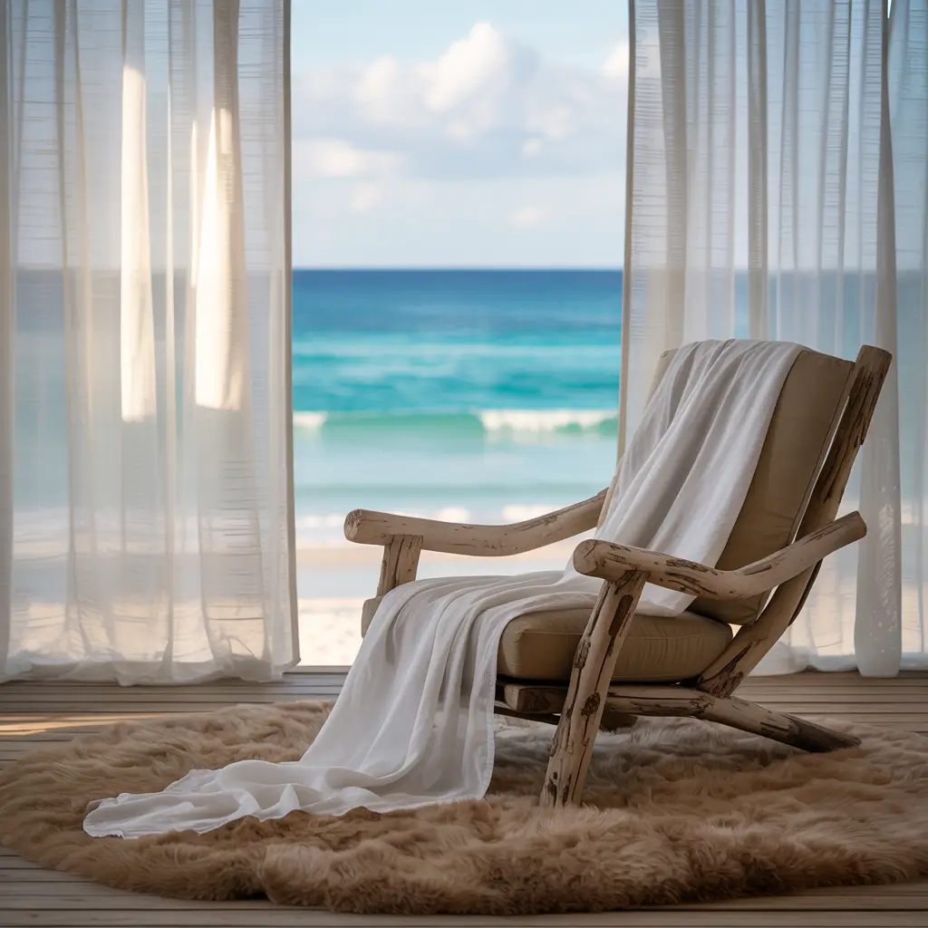 Texture references strengthen coastal themes without becoming kitschy. Rope details, weathered wood, smooth stones, and flowing fabrics suggest ocean environments without resorting to seashell decorations or nautical clichés.