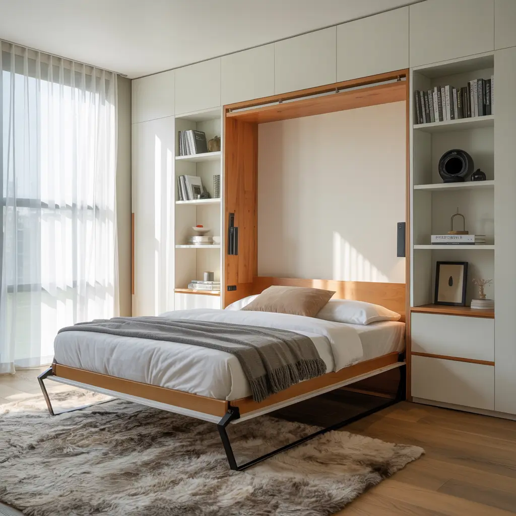 My cousin installed one in her studio last year, and watching it in action never gets old. During the day, her “bedroom” becomes a home office with floor-to-ceiling bookshelves. At night, the desk folds up, the bed comes down, and boom – instant bedroom. It’s like having two rooms for the price of one.
