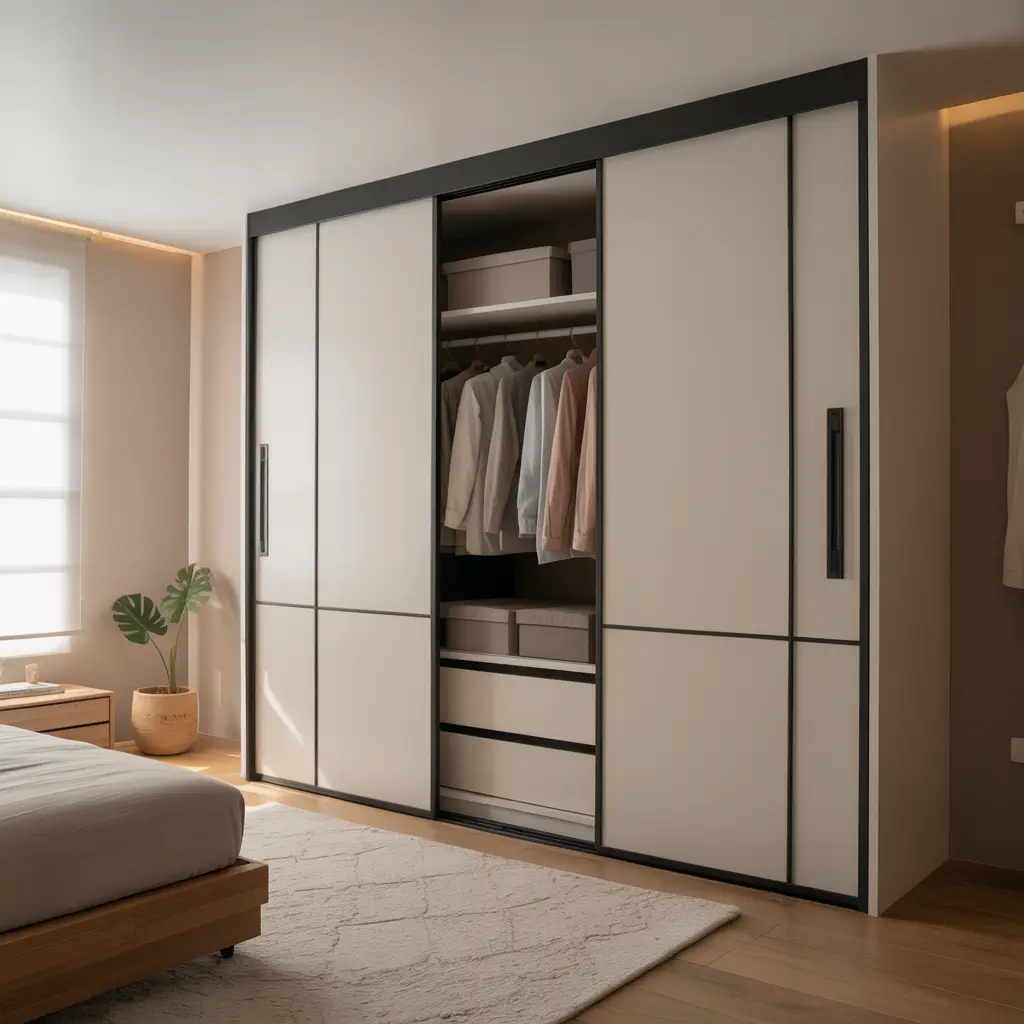 Traditional wardrobe doors that swing open are basically the enemy of small bedrooms. They need clearance, they block pathways, and they’re always hitting something. Sliding door wardrobes eliminate all these problems while looking incredibly sleek.