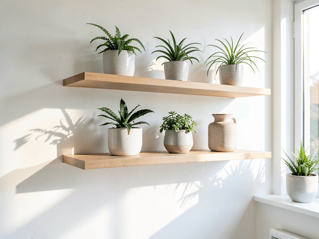 The trick here is choosing the right shelves. You want something sturdy enough to hold your planters but sleek enough not to overwhelm the space. I went with simple pine shelves that I stained myself (feeling very DIY Pinterest mom that day).
