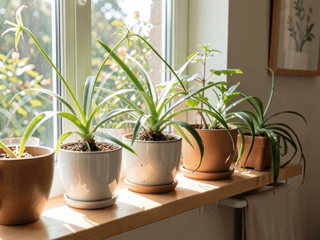 My kitchen window hosts four small spider plants in matching terracotta pots (basic? maybe. effective? absolutely). They get that sweet morning sun, and I get to feel like a plant parent who actually knows what they’re doing.