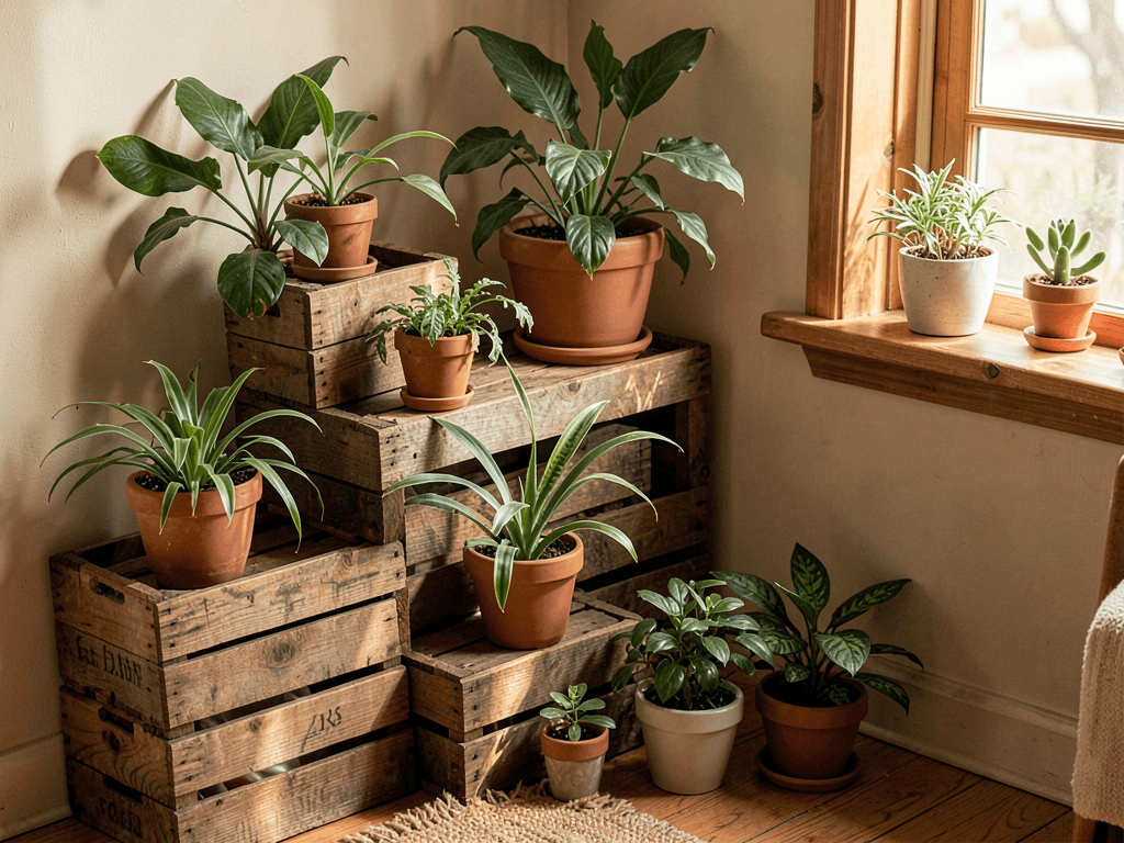 I’ve got two vintage apple crates stacked in my entryway, each housing a lush spider plant. The weathered wood contrasts beautifully with the bright green foliage, and everyone who walks in immediately comments on them. Mission accomplished, IMO.