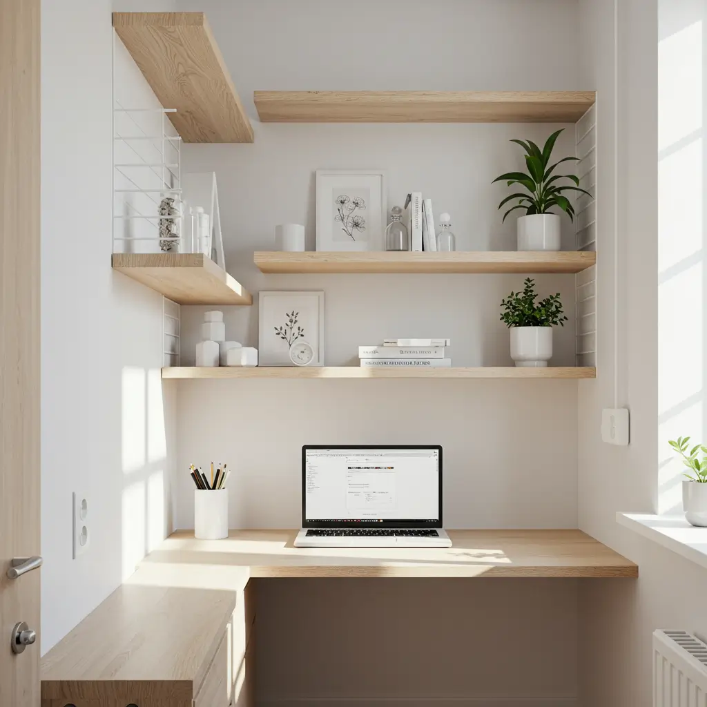 I honestly believe that a cluttered desk leads to a cluttered mind. If you find yourself constantly moving piles of paper just to find your mouse, you need a minimalist reset. A minimalist study nook uses floating shelves to get everything off your primary workspace and onto the walls.