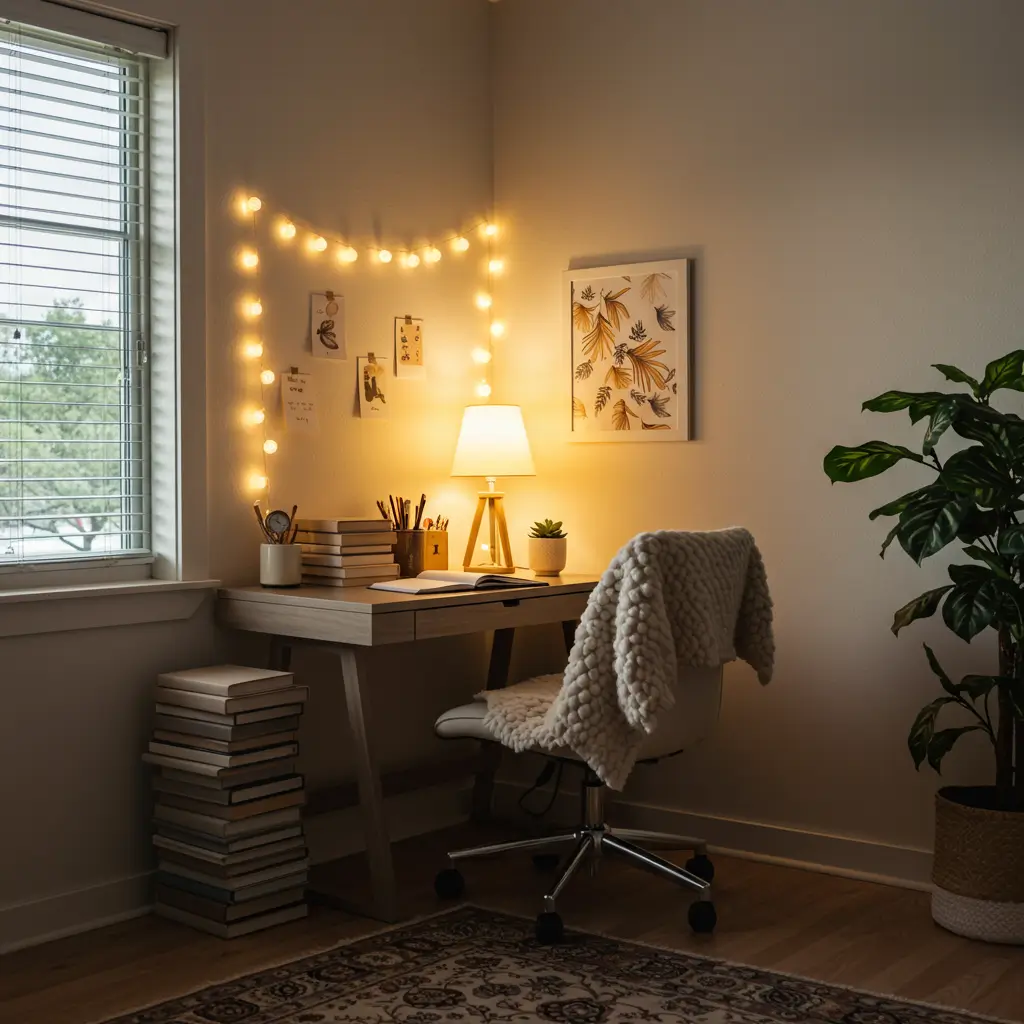 Not every study session needs to feel like a corporate board meeting. Sometimes, you need to hunker down and read for four hours straight. For those sessions, I swear by a cozy corner setup. This approach focuses on comfort, warmth, and textures that lower your stress levels.