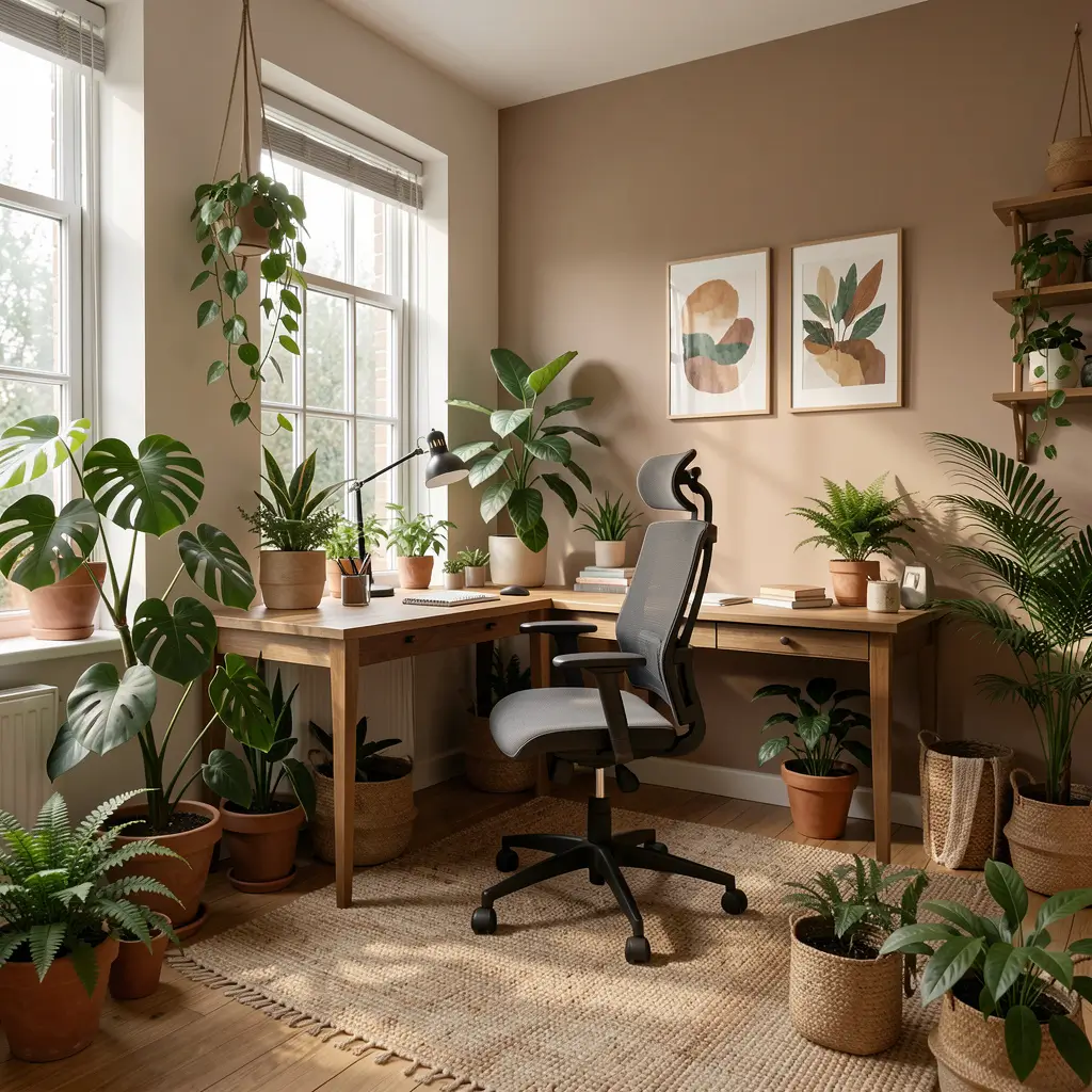 Pair your plants with raw wood desks, stone coasters, and linen curtains. These materials bring an outdoor vibe inside, which lowers stress levels. I once added a small tabletop fountain to my desk, and the sound of running water helped me power through a 10-page research paper without a single break.