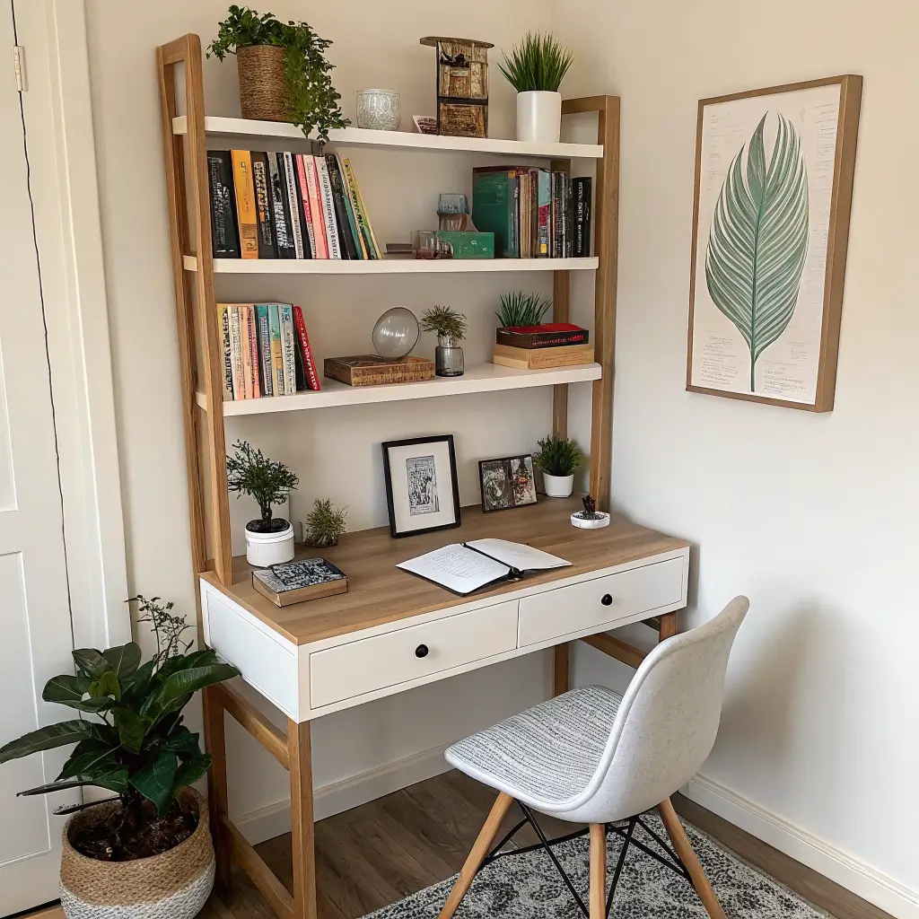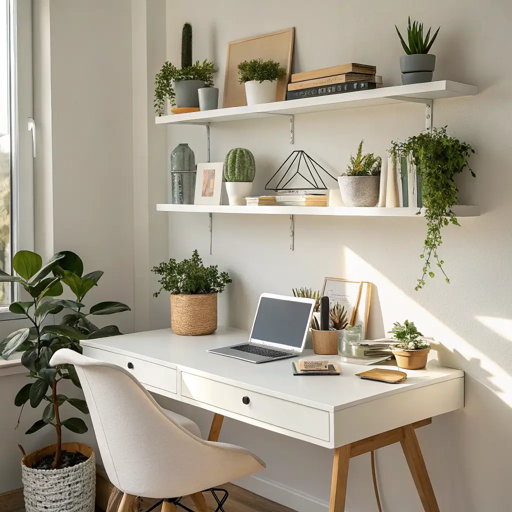 I love this idea because it looks polished without trying too hard. Even one shelf can change the whole mood of your desk wall. Ever noticed how a little greenery makes a room feel less tired?