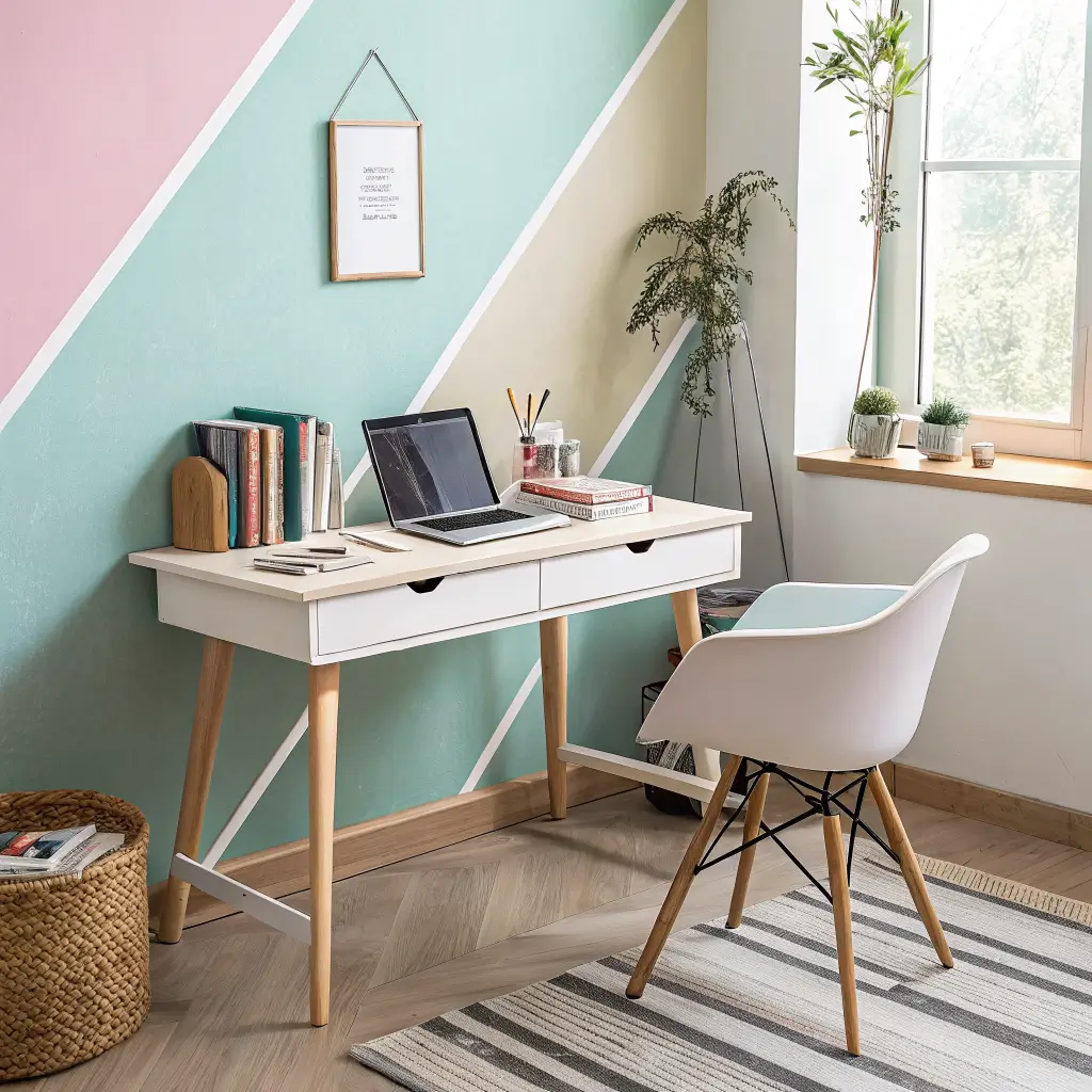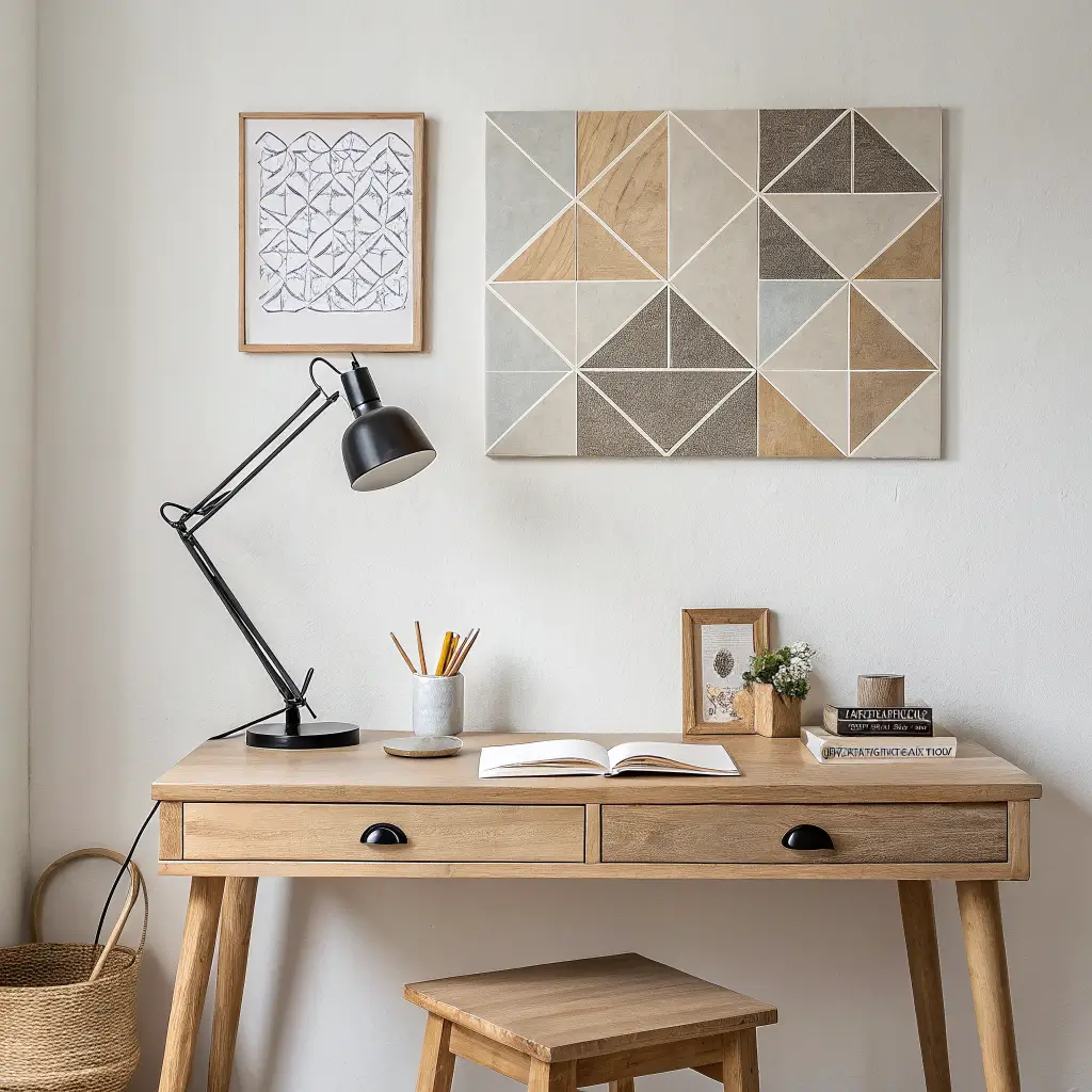 If you like a clean and modern study setup, geometric wall art makes a strong choice. It adds visual interest without making the space feel busy. Minimalist wall decor works best when you want your study table to feel calm, sharp, and distraction-free.