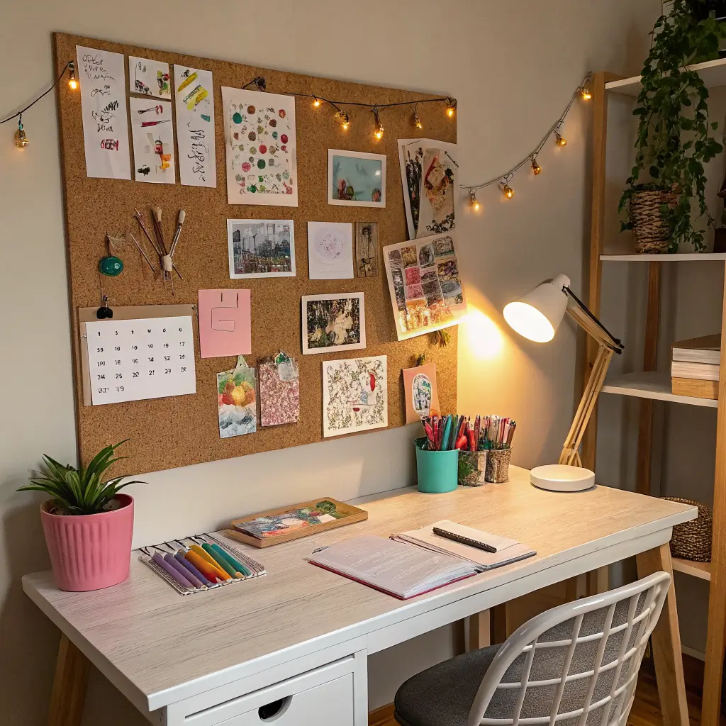 Corkboards let you pin notes, reminders, timetables, photos, and mini inspiration pieces in one place. They create a “live” wall that changes with your needs. That flexibility makes them especially helpful for students and busy professionals.
