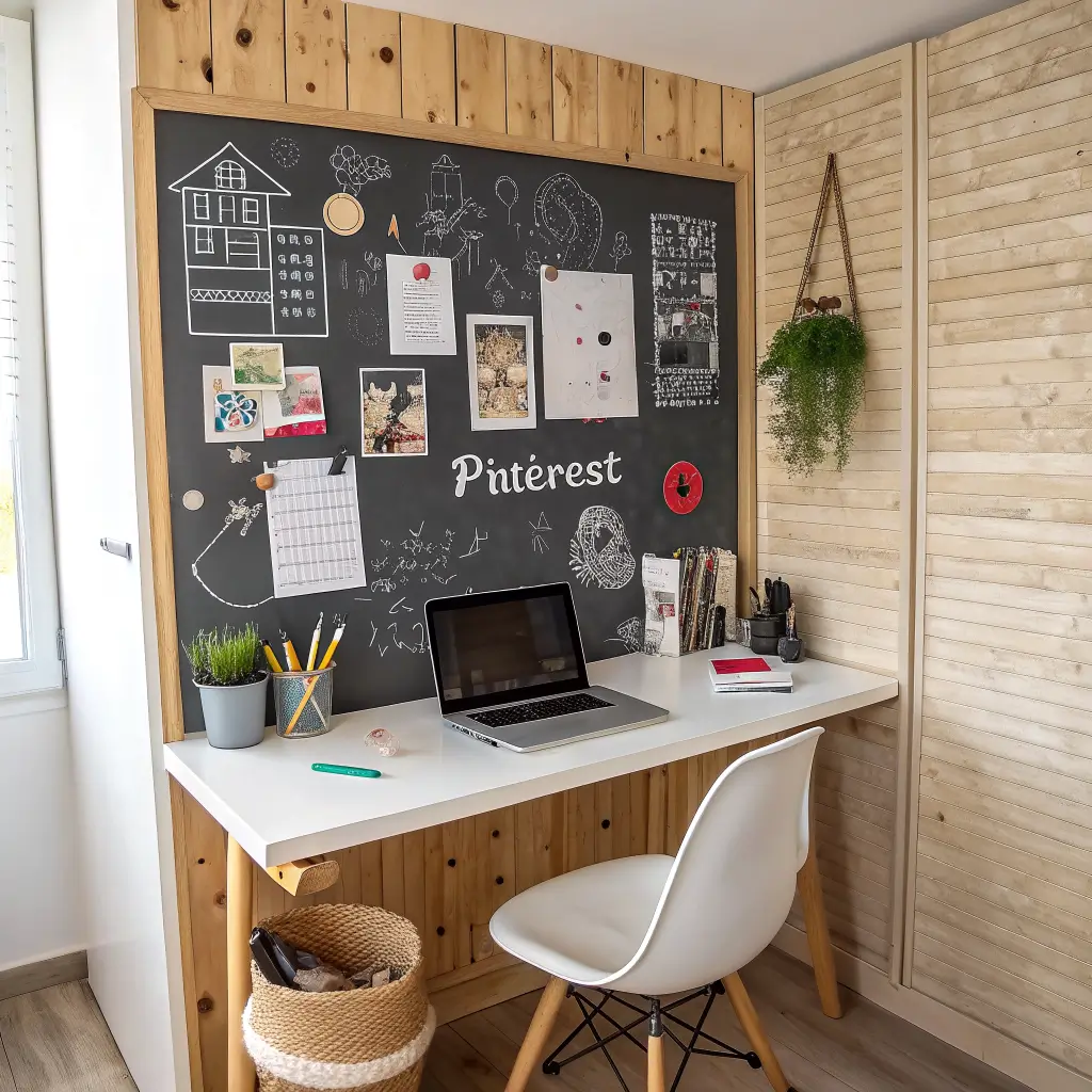 From floating shelves with potted plants to a chalkboard or whiteboard wall panel, each of these ideas offers something useful and stylish. Some add storage, some add personality, and some do both. The best choice depends on what you need most when you sit down to study or work.