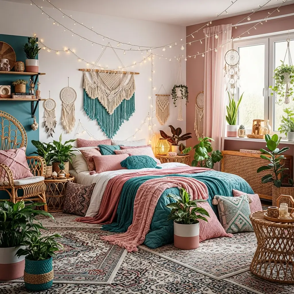 Boho Chic Teal and Pink Bedroom Oasis