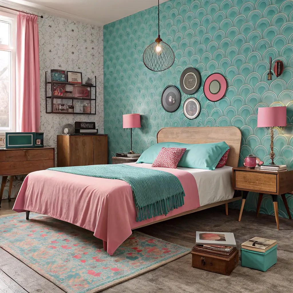 Teal and Pink Eclectic Artistic Bedroom