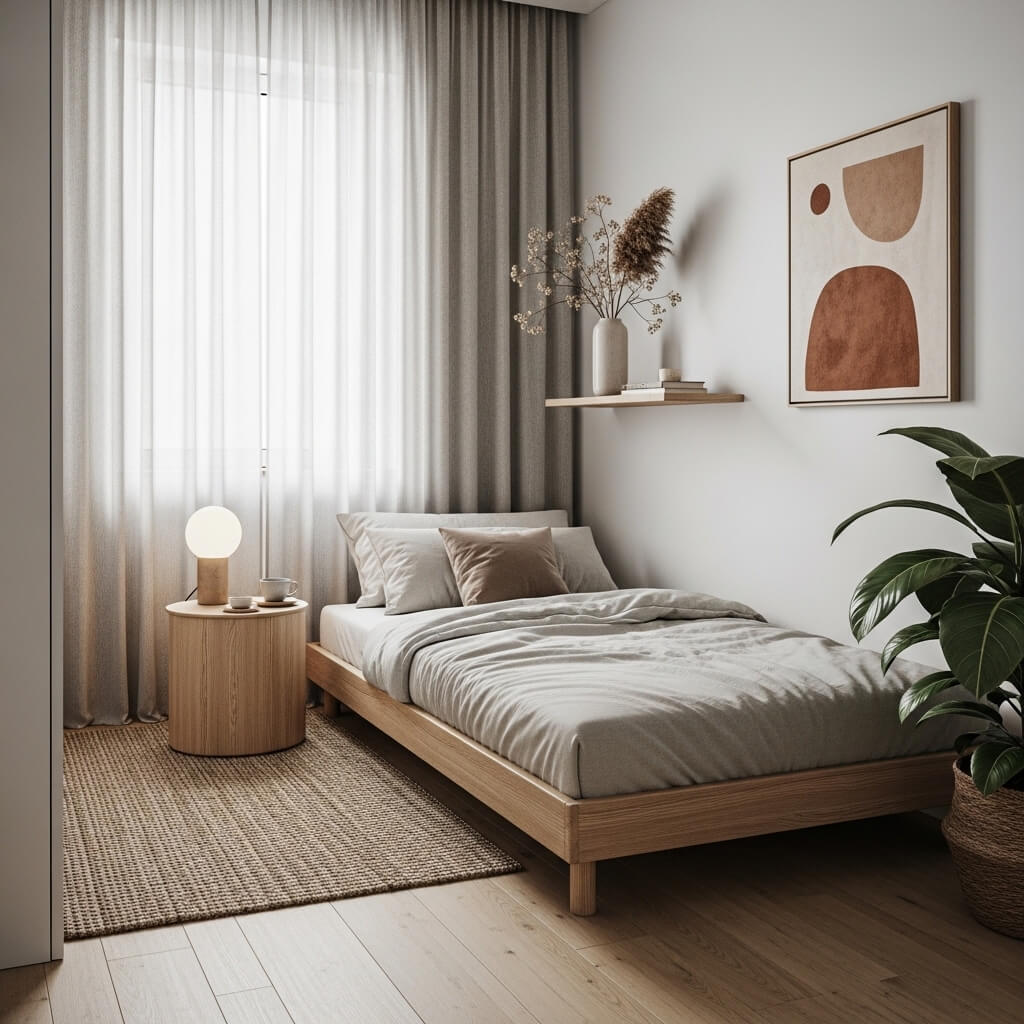 The reason Japandi translates so beautifully to tiny bedrooms is that both Japanese and Scandinavian design traditions already prioritize small, efficient spaces. This aesthetic was practically built for compact living. The low furniture makes ceilings feel taller. The muted palette makes walls feel farther apart. The natural materials bring warmth without bulk. It’s genuinely one of the smartest choices you can make for a small bedroom.