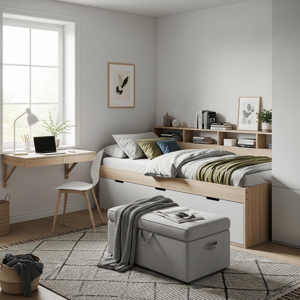 Here are some multi-functional furniture pieces that genuinely make a difference in small bedrooms: