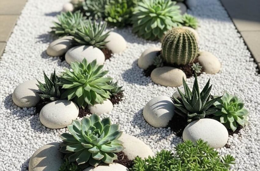 If you’re into that sleek, modern aesthetic (or you’re kind of forgetful about watering—no judgment), a succulent rock garden is your answer. These babies are practically indestructible, and they look ridiculously chic.
