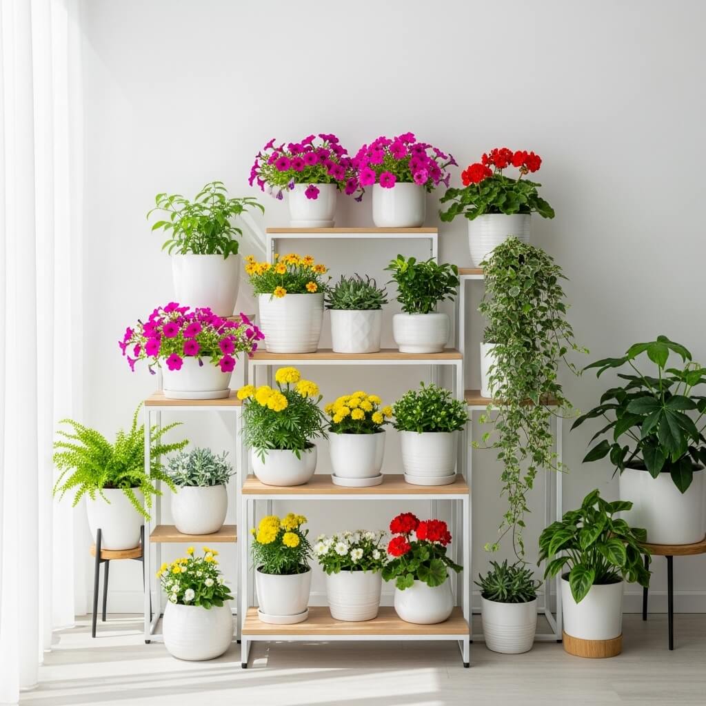 • Bottom tier: Shade-tolerant plants or trailing varieties (ivy, begonias)